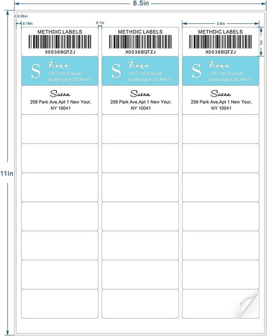 Address Labels 1" x 2-5/8" 3000 Labels Sticker Paper for Laser/Ink Jet Printer
