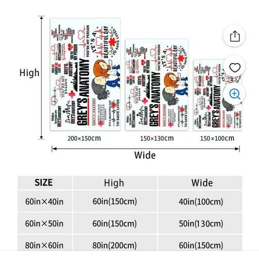 80×60inch Anatomy Blanket You are my person Throw Blanket Ultra-Soft Blanket for