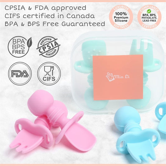Toddler Utensils Set - First Training Self Feed Silicone Baby Utensils