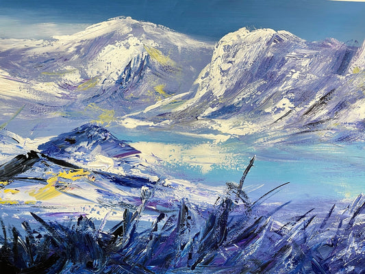 100% hand-painted 36in x24in Snow mountain oil paintings on canvas