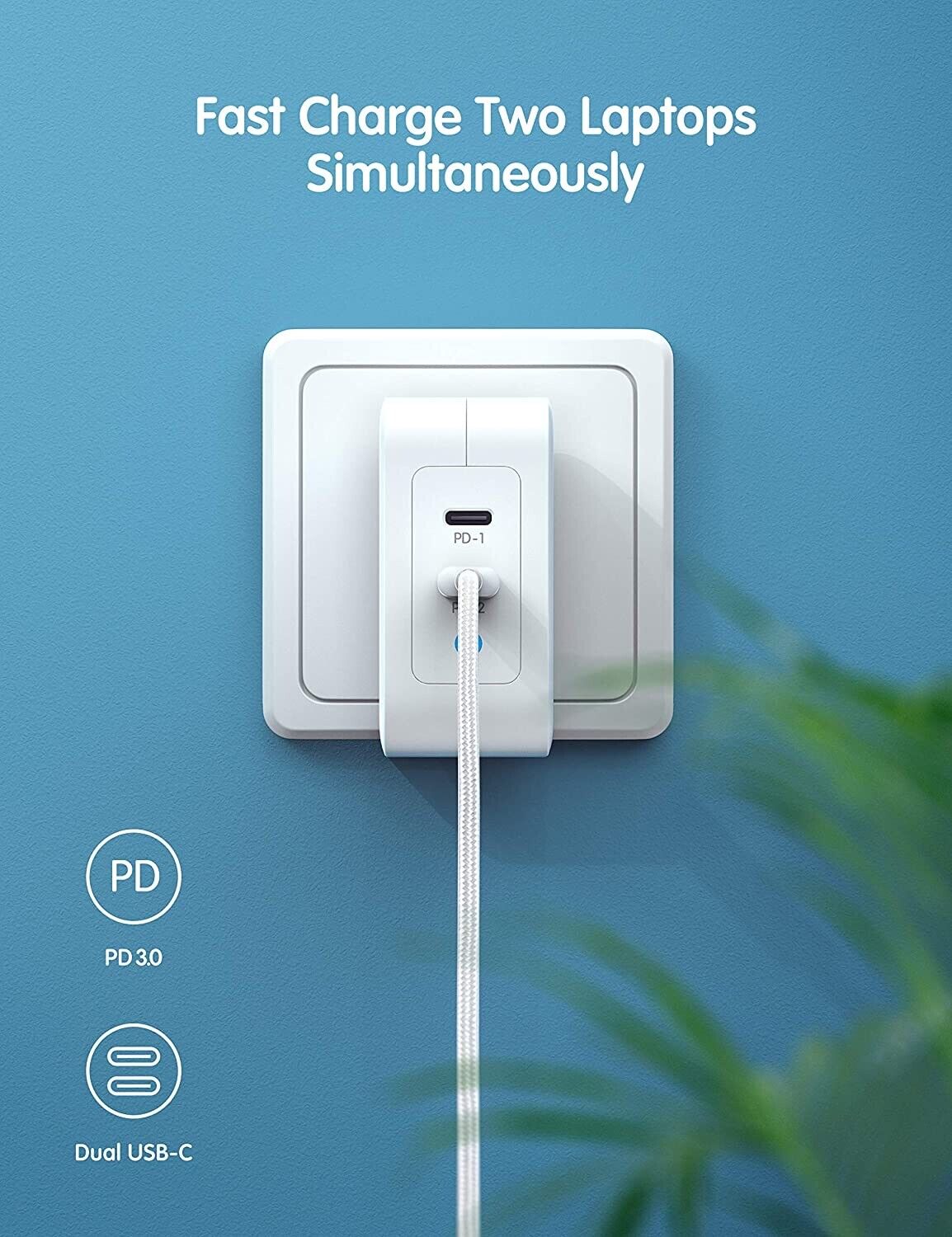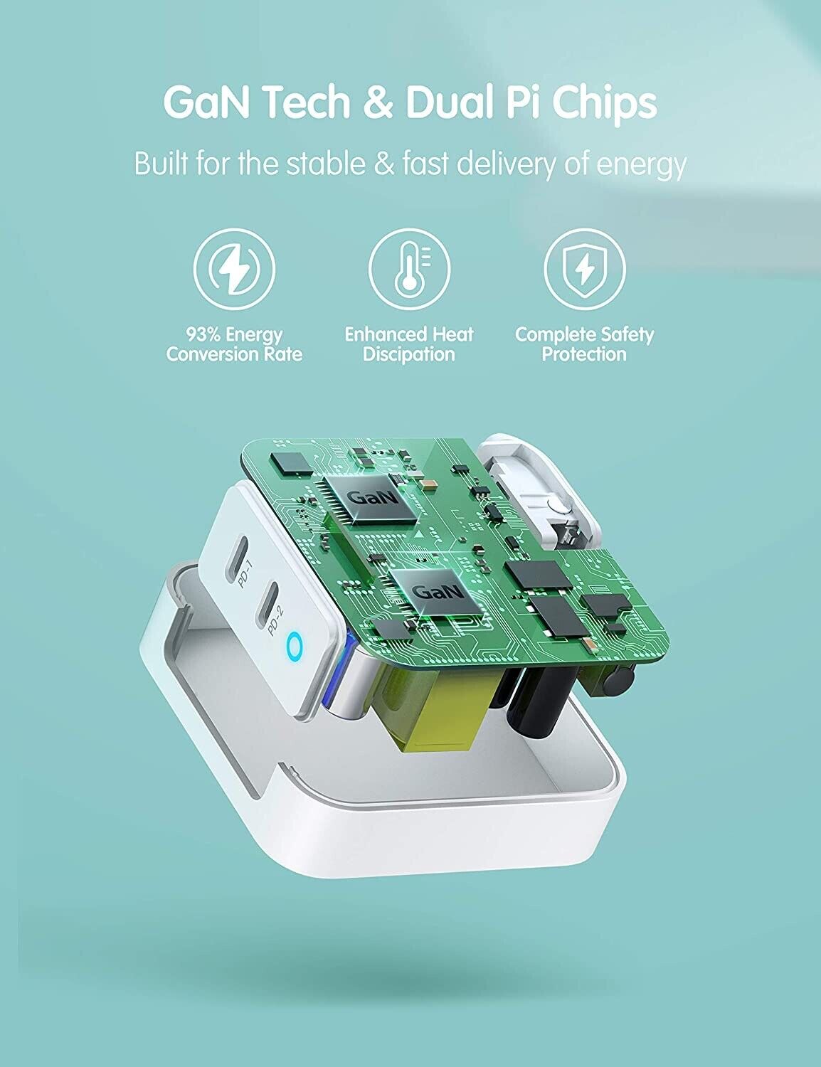 Este potente cargador GaN de 100 W ofrece suficiente energía para todos sus dispositivos de alta potencia, en un cuerpo increíblemente portátil. La tecnología GaN preparada para el futuro, con una alta tasa de conversión de energía, junto con Power Delivery 3.0 para una carga rápida, puede ser una gran ayuda para sus computadoras portátiles USB-C como la MacBook Pro, especialmente cuando viaja o en un viaje de negocios.