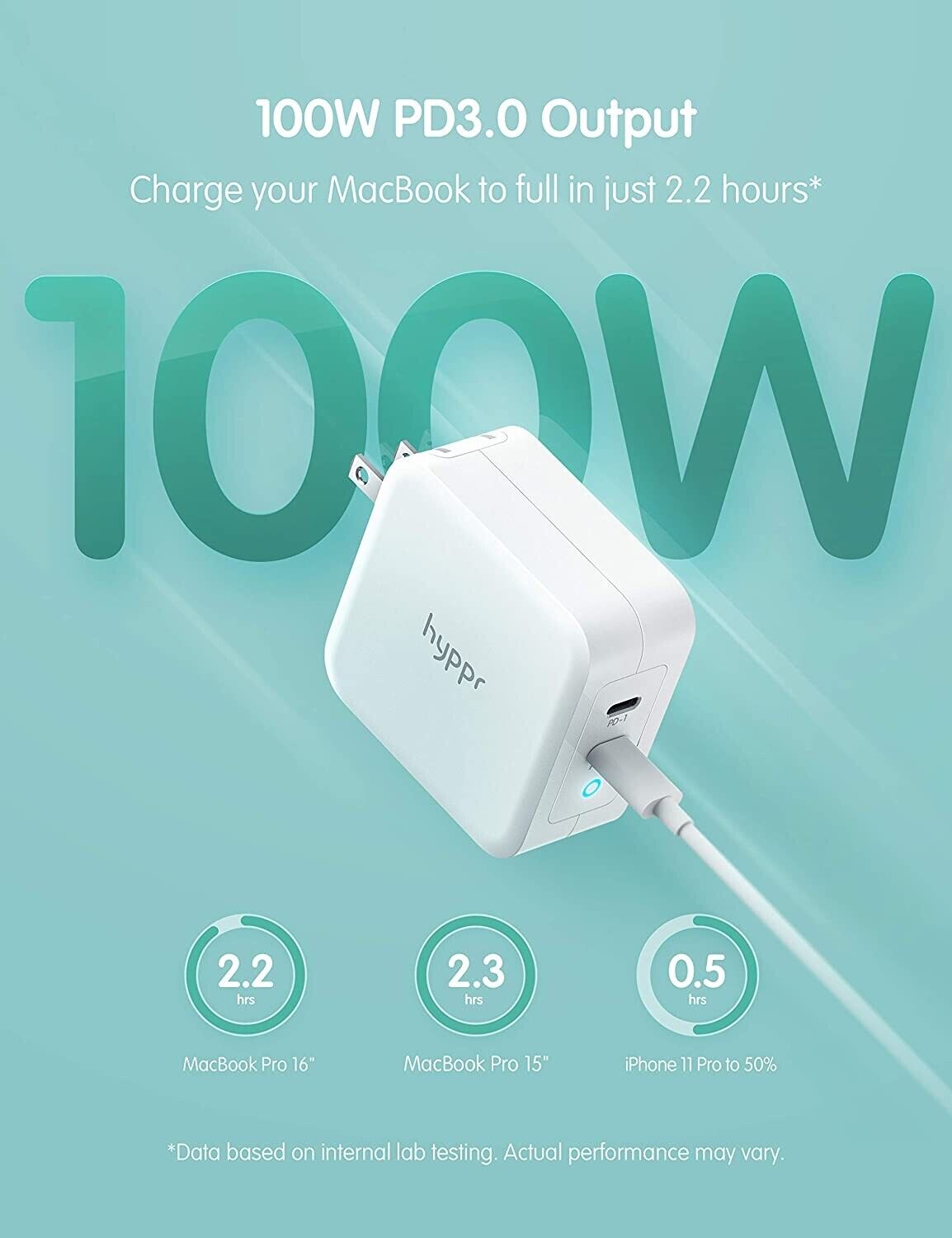 Cable los 4 pies PD Cargador hyppr 100W USB C Cargador Macbook Tipo rápido Cargador de pared C