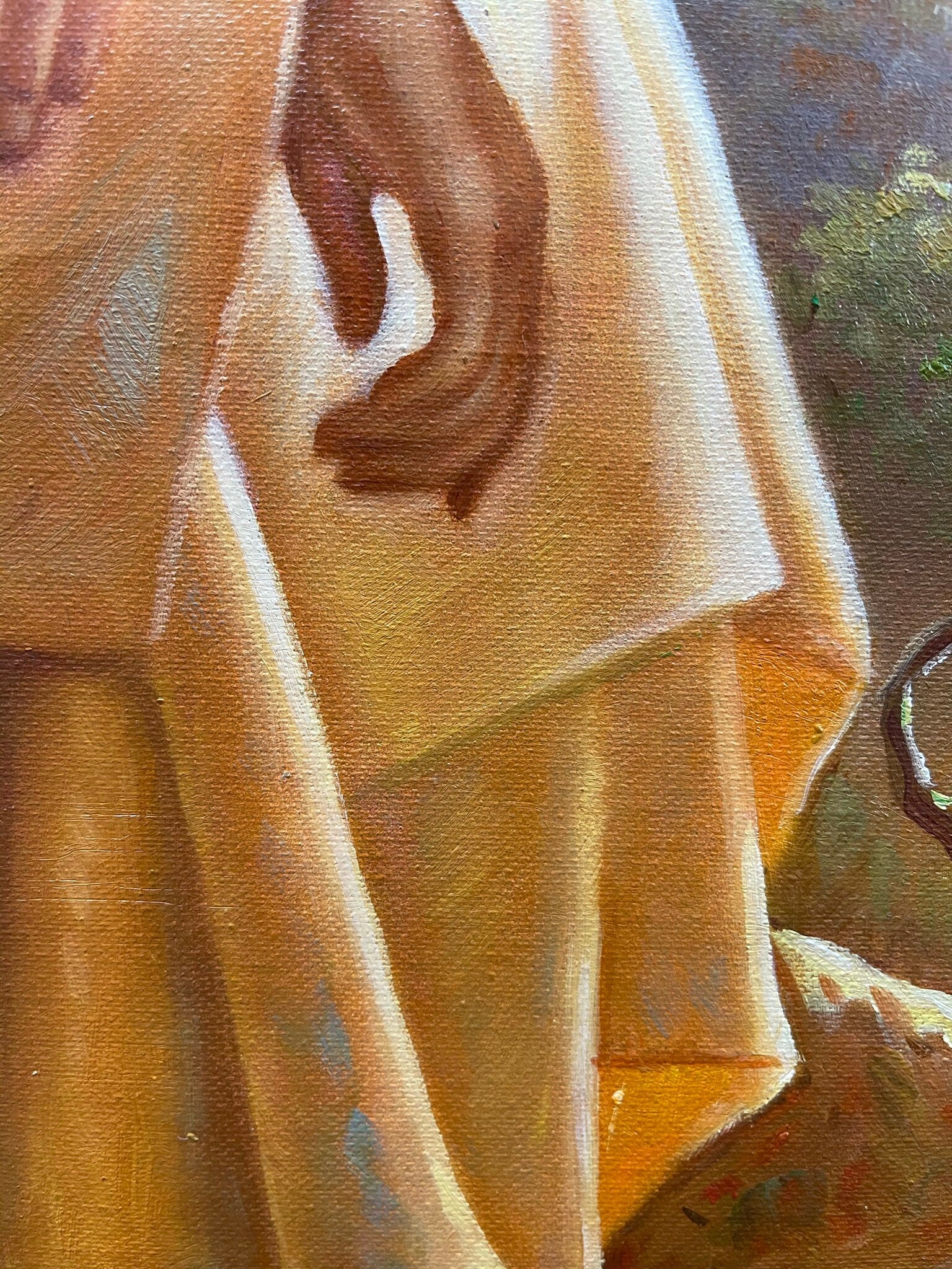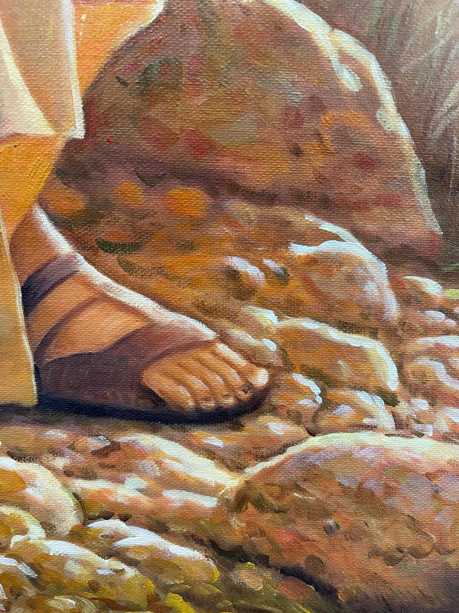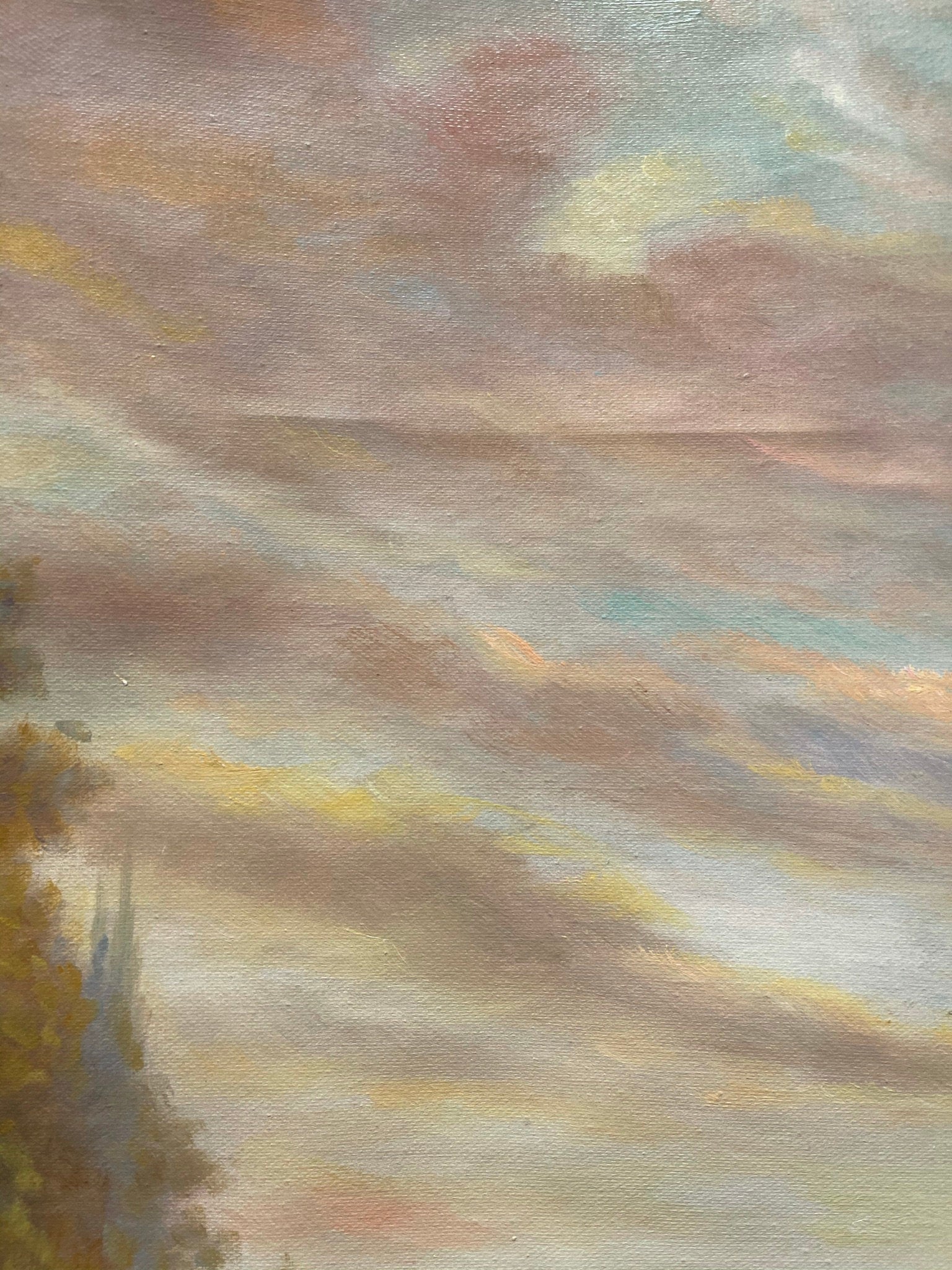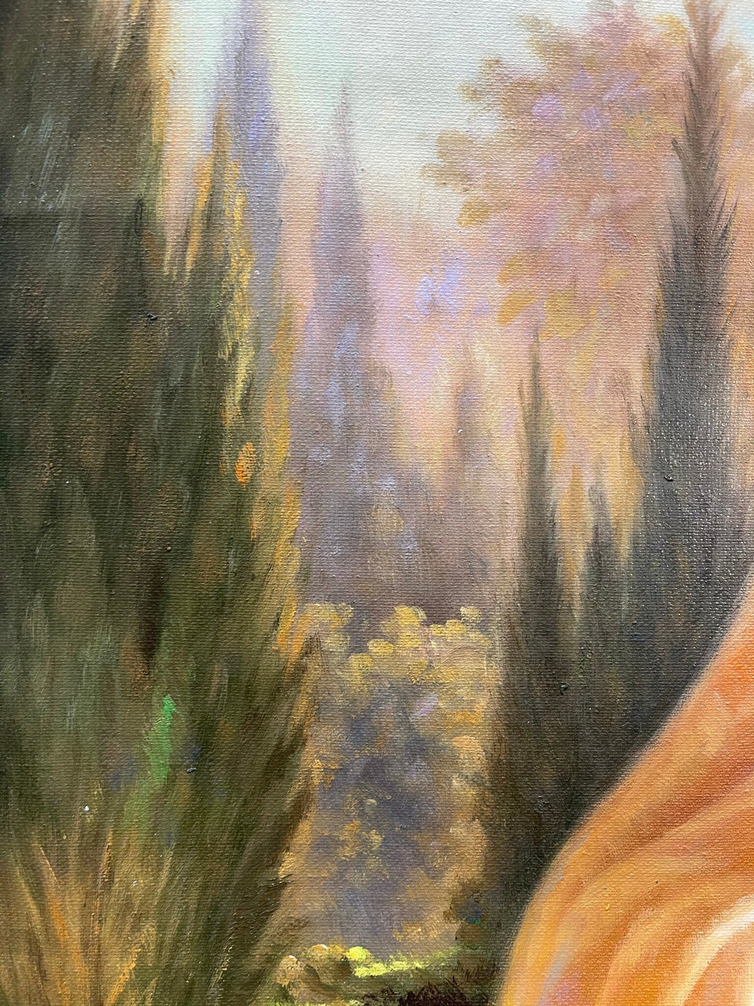 There is no frame, only canvas, canvas rolled up, put in mailing tubes