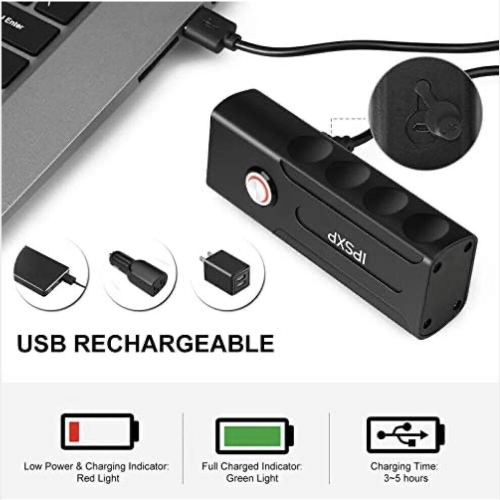 ✅ USB RECHARGEABLE & LONG SERVICE TIME: USB rechargeable let you say goodbye to batteries. Only takes 3 ~ 5 hours to fully charge (Depending on your charging voltage). It can run 6 hours on the highest mode, 18 hours on the middle mode and 12 hours on strobe setting. To maintain battery life, use a 5V1A charger for charging,do not use the fast charger.Built-in intelligence IC can prevents overcharge or over discharge and extend battery life.