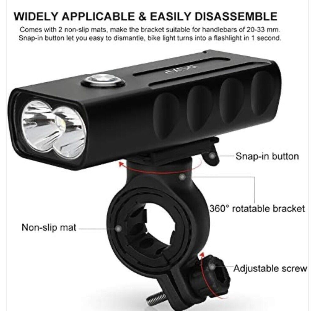 ✅ QUICK-RELEASE : You can install the headlight without any tools on almost anywhere (mountain/kids/street bicycle, stroller, wheelchair, motorcycle, scooter, e-bike), detaches it in 1 seconds and become a compact but powerful emergency flashlight. Keep it inside your car, basement, attic, and emergency kit.