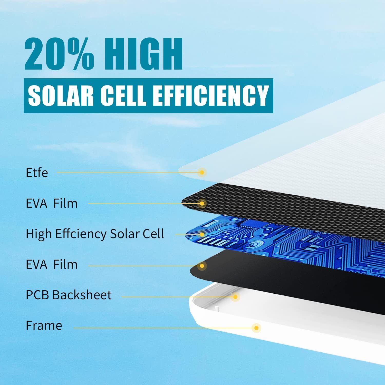 - [EFFICIENT SOLAR CELLS]: Made of quality high purity silicon cells provides stable and continuous charging for your cameras or other devices. Our solar panel has a higher conversion efficiency rate and power output.