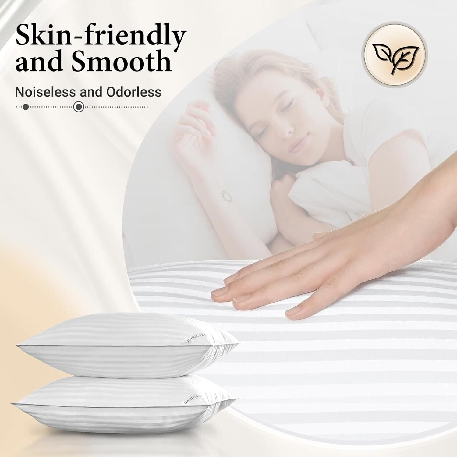 STANDARD SIZE PILLOWS: Measuring 20 x 26 inches and made with high-quality materials, these pillows are perfect for side, back, and stomach sleepers, offering a comfortable night's rest.
