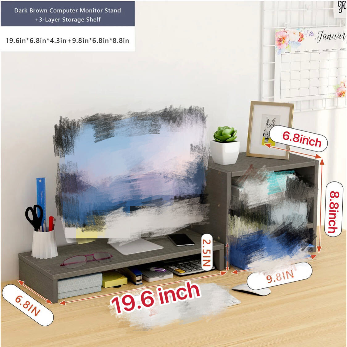 2 TIer Monitor Stand Riser, 20 inch Monitor Riser,Desktop Organizer Stand with K