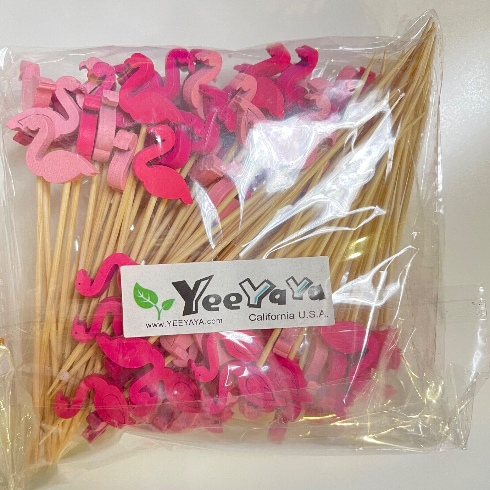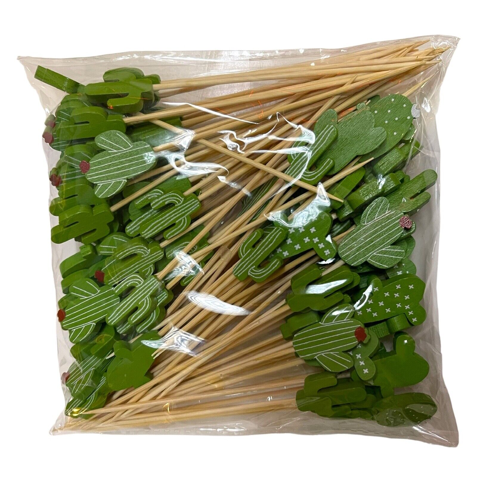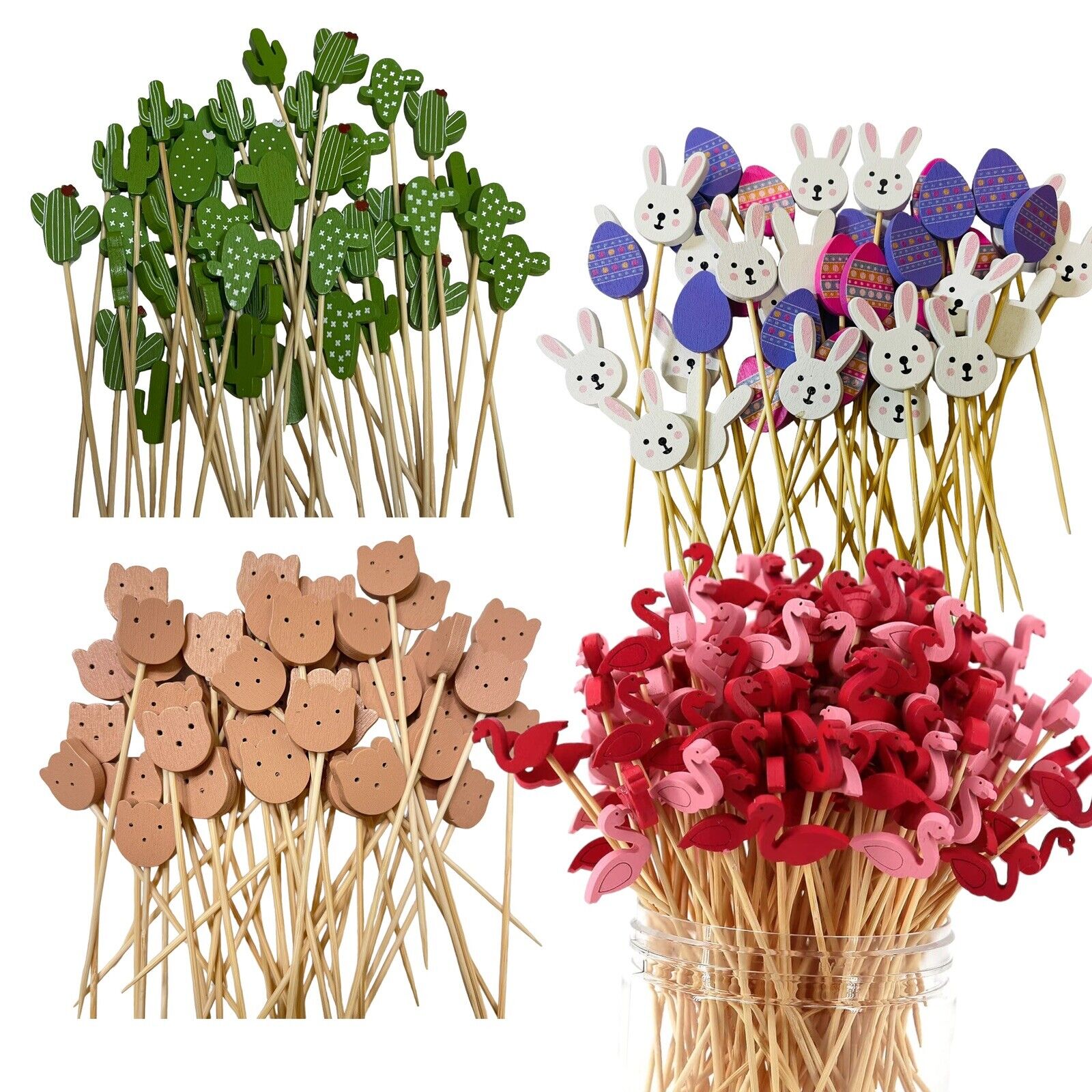 100 PCS Bamboo Cocktail Picks 5inch Food Picks Easter cactus flamingo