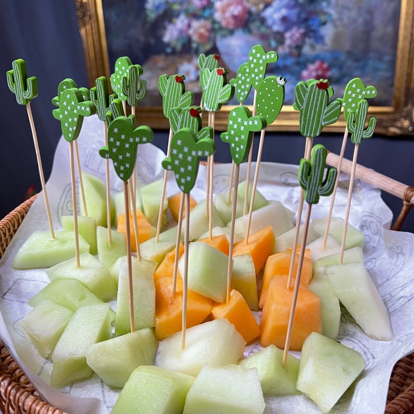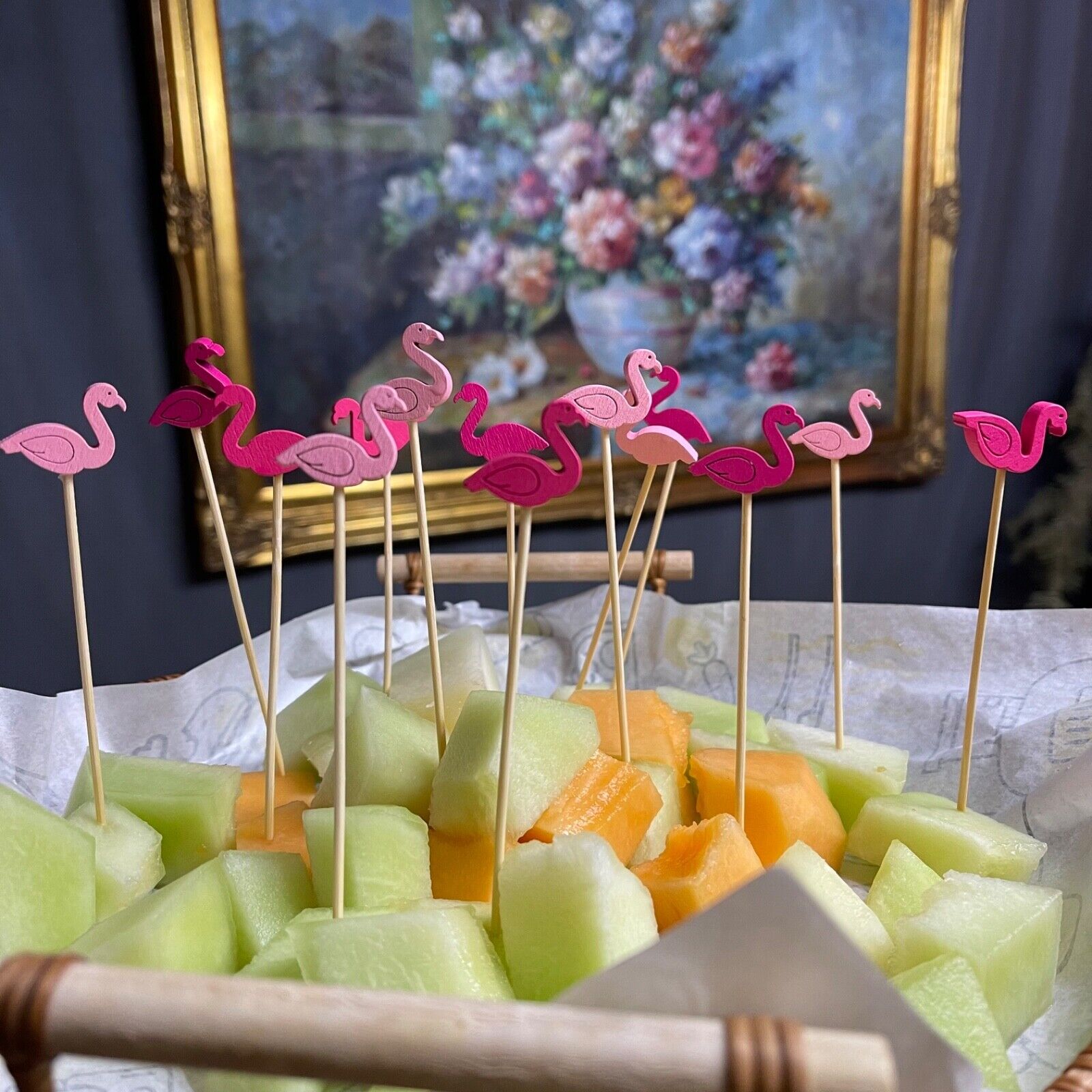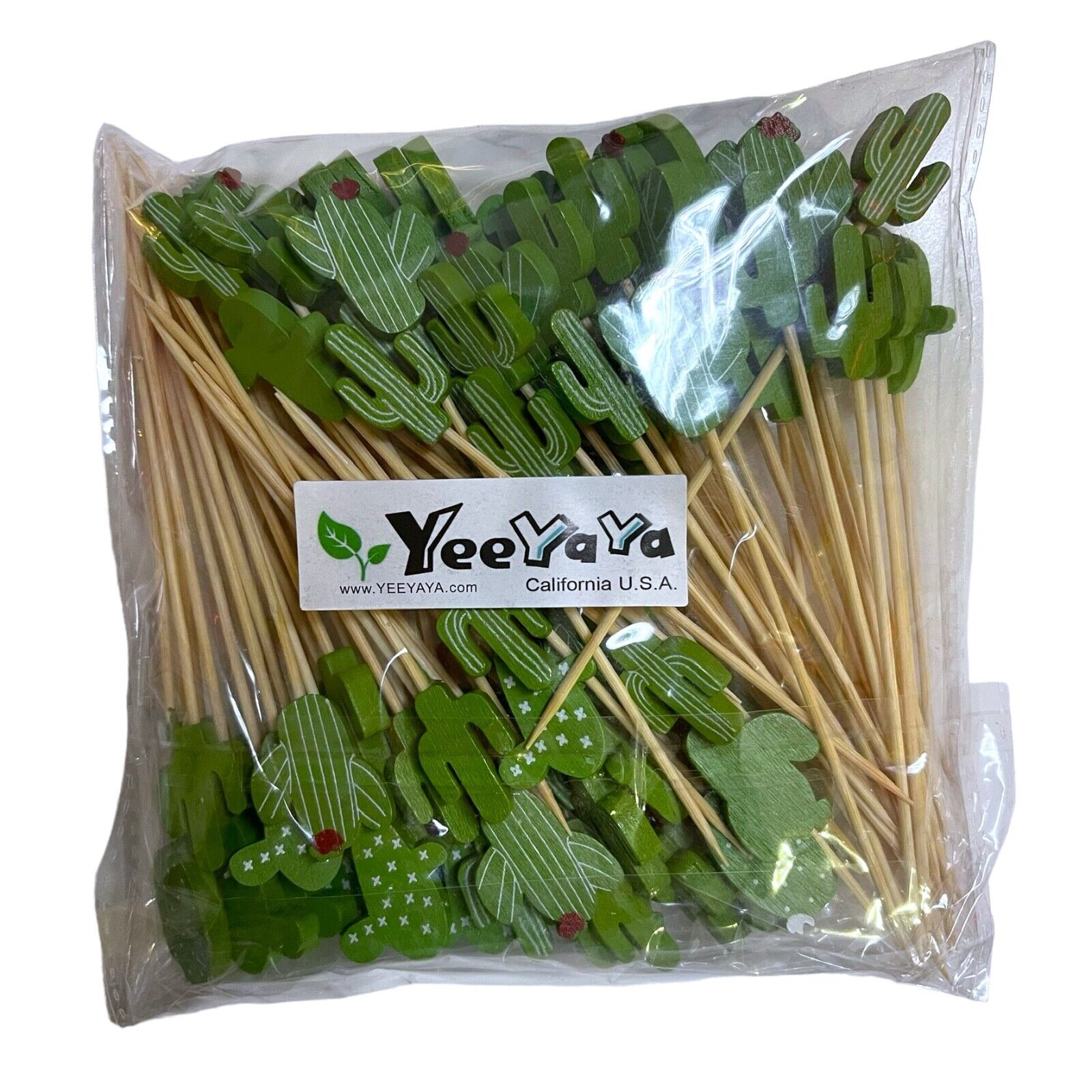 100 PCS Bamboo Cocktail Picks 5inch Food Picks Easter cactus flamingo
