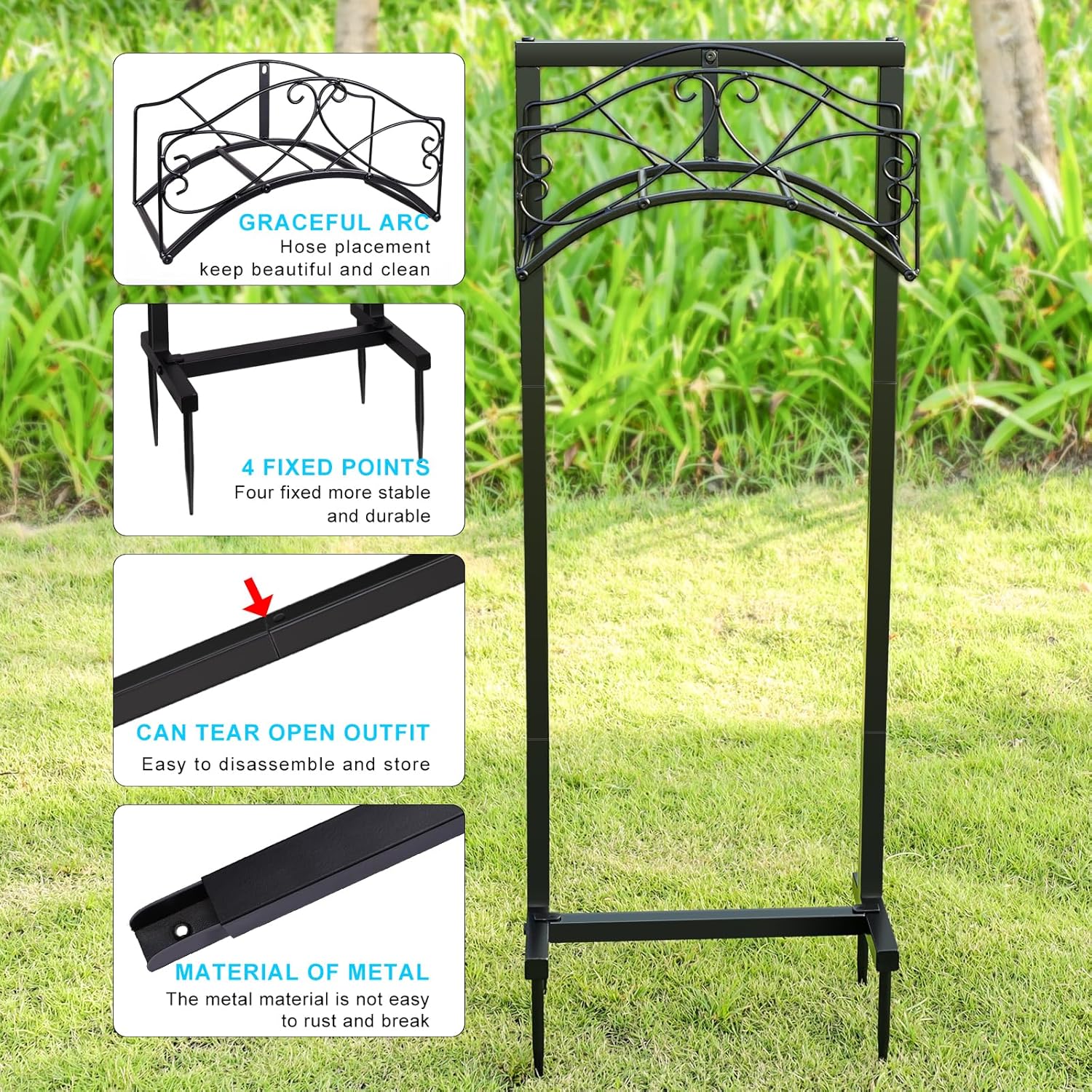 - 【Unique Deisgn】 The exterior of the hose holder is well designed and unique. Because of lightweight and easy-to-move, the water hose stake is well suitable for garden, backyard, lawn, courtyard flower beds, vegetable plots, and more. Not only that, there are five fixed points on the top of the pipe frame to ensure that the shelf is sufficiently firm, and the curved hose holder basket design is more conducive to the storage and use of the hose.
