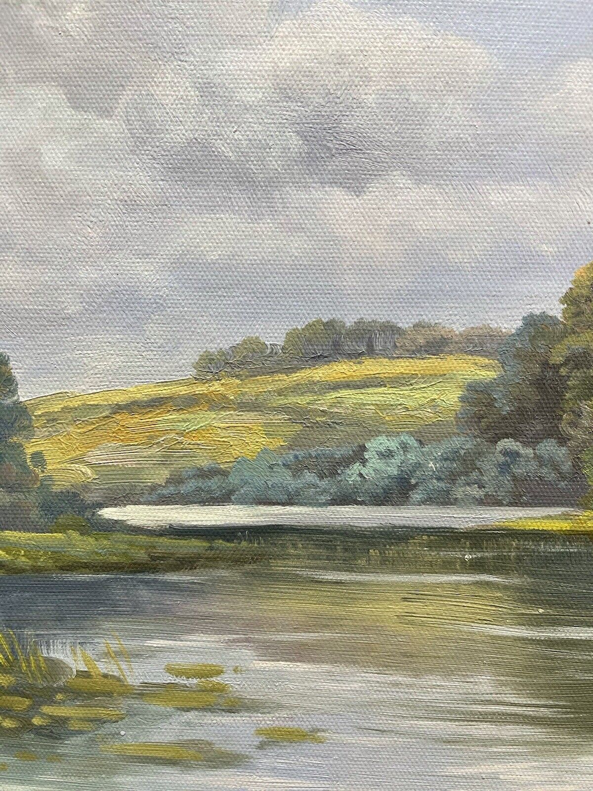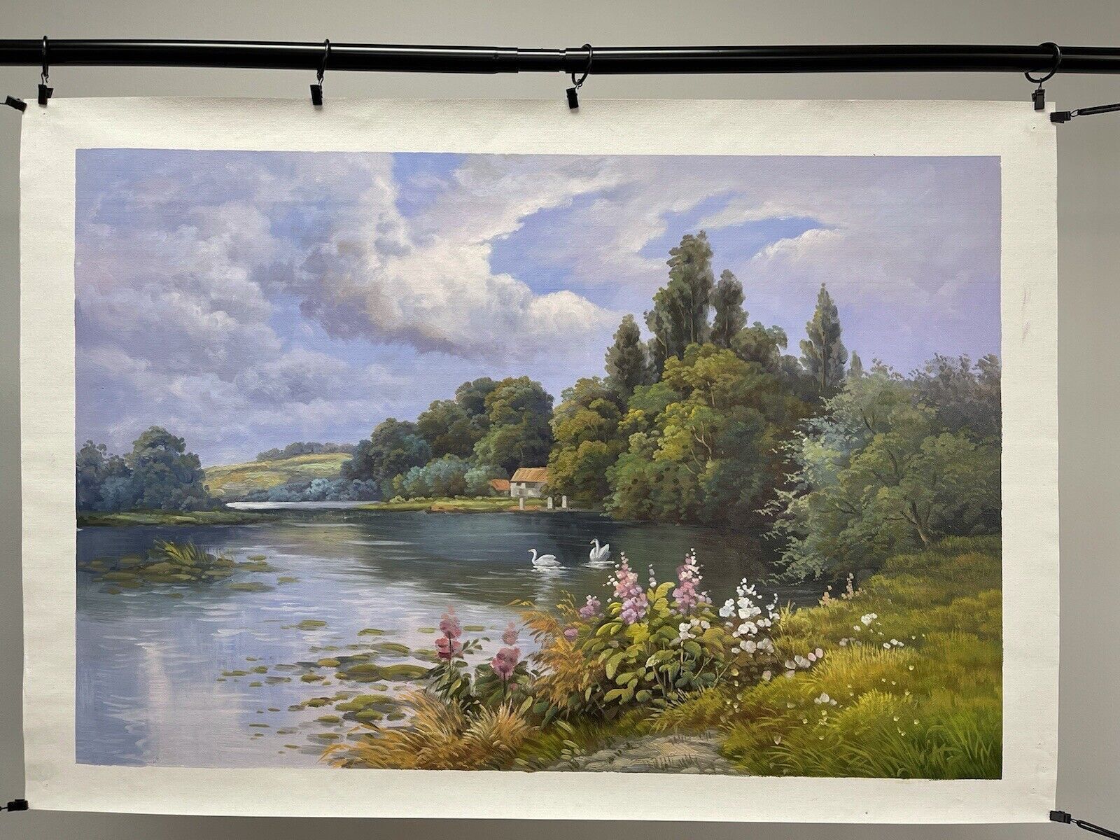 There is no frame, only canvas, canvas rolled up, put in mailing tubes