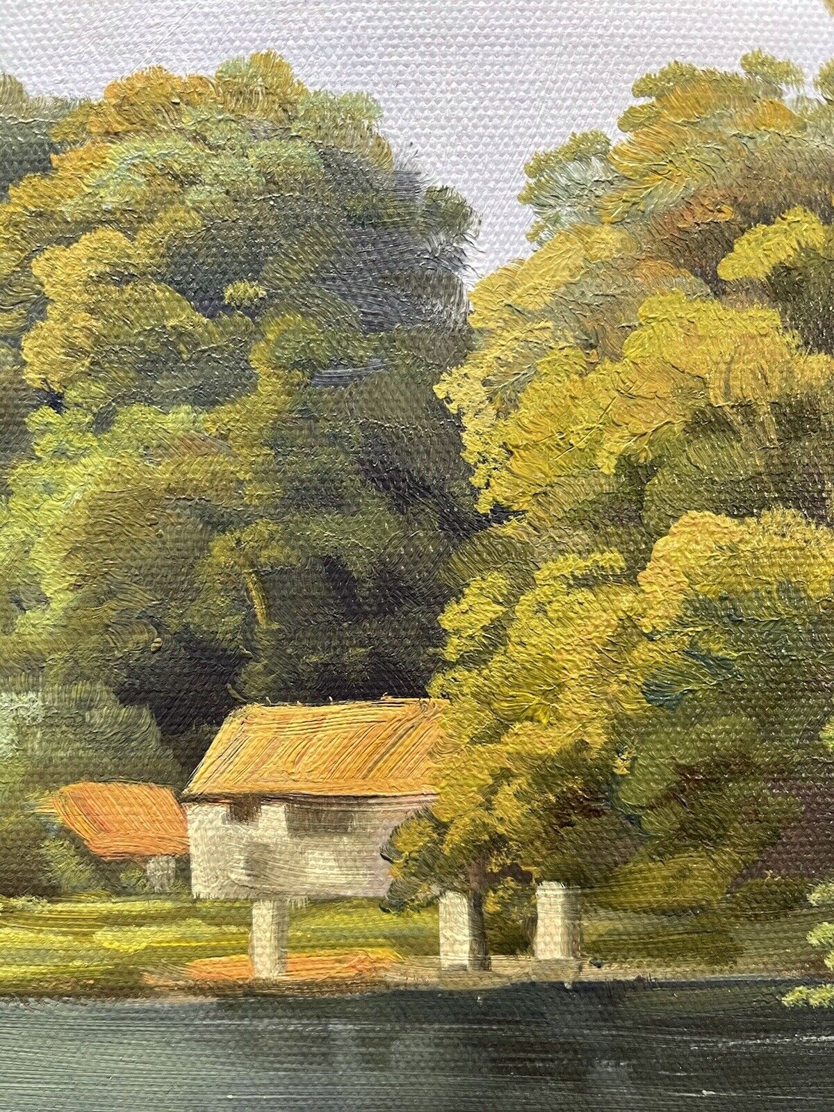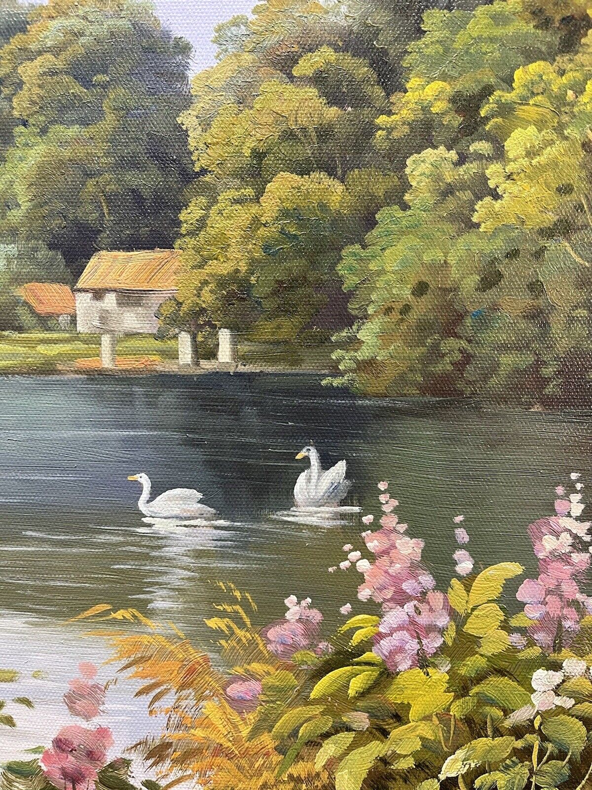 There is no frame, only canvas, canvas rolled up, put in mailing tubes