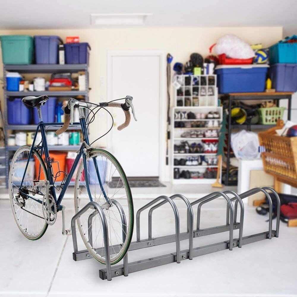 4 Bikes Floor Rack Stand Steel Bicycle Storage Organizer Parking Holder