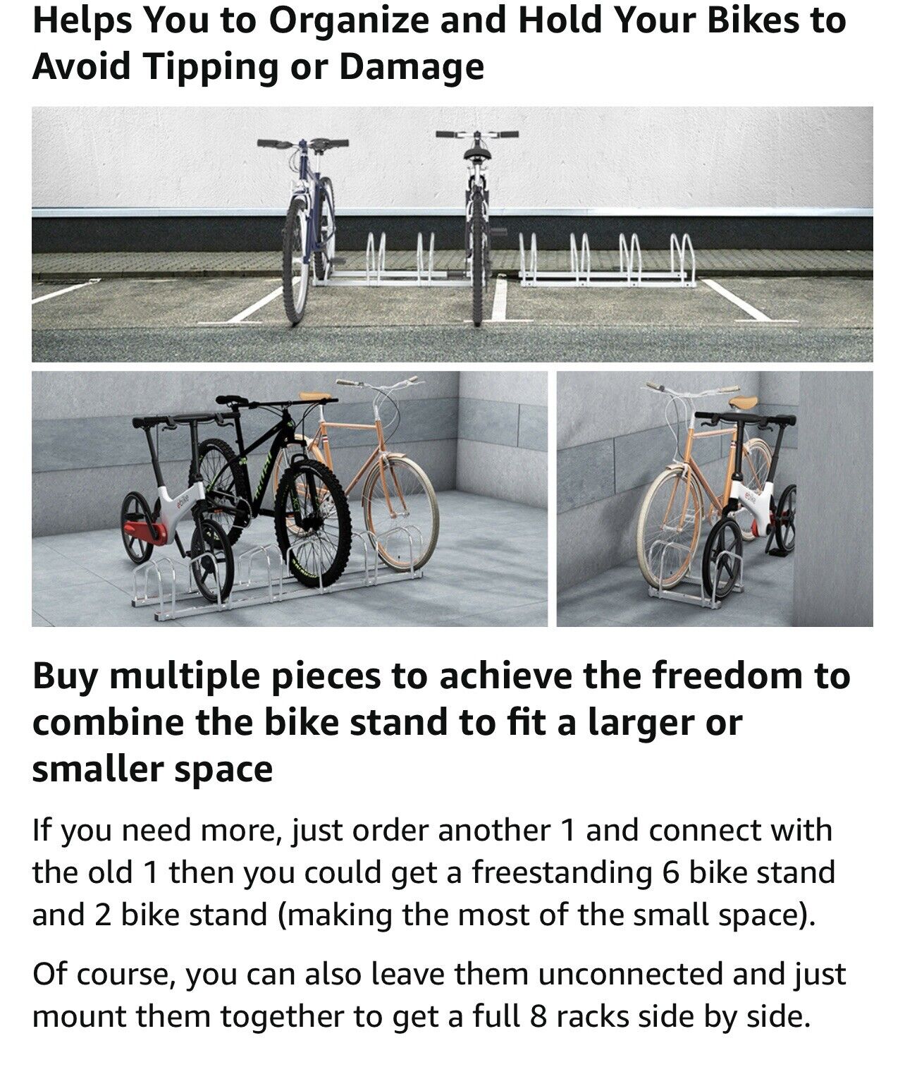If you need more, just order another 1 and connect with the old 1 then you could get a freestanding 6 bike stand and 2 bike stand (making the most of the small space).