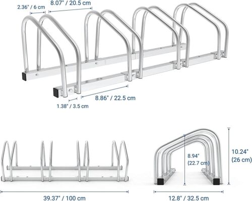 STABLE & DURABLE - Each wheel holder is made of 2 curved quality steel tubes with a powder-coated finish for strong support and long-lasting, the bicycle floor stand can be anchored to the ground with anchors and screws(All the installation accessories and instructions are coming in the package), then you can attach a lock and secure your bike to the rack, which eliminates any possibility of theft of your bike.