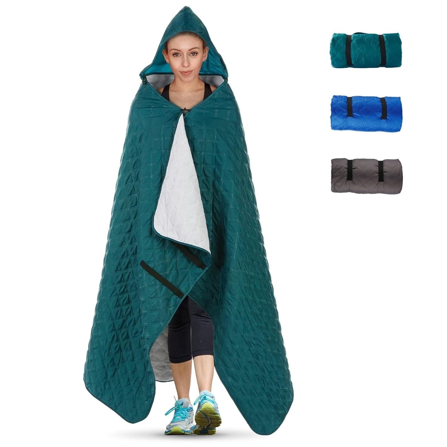 Stay warm and dry in any weather with this versatile outdoor hooded blanket. Made with waterproof material and a soft fleece lining, it's perfect for camping, picnics, sports events, and chilly evenings. The hidden hood adds extra coverage, while the windproof button keeps the blanket secure around your shoulders.