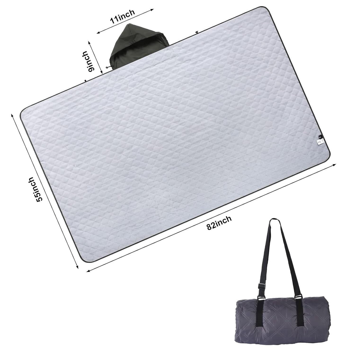 82”x55” Outdoor Waterproof Camping Blanket - Hooded Fleece Windproof Blanket