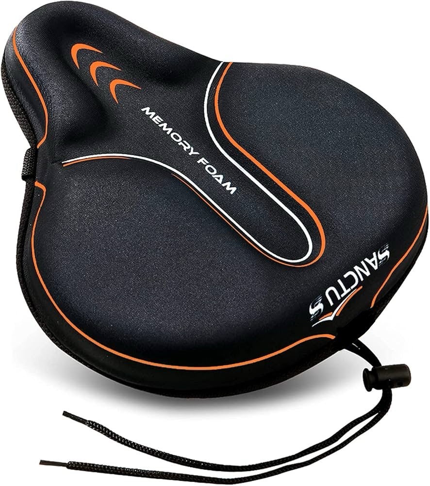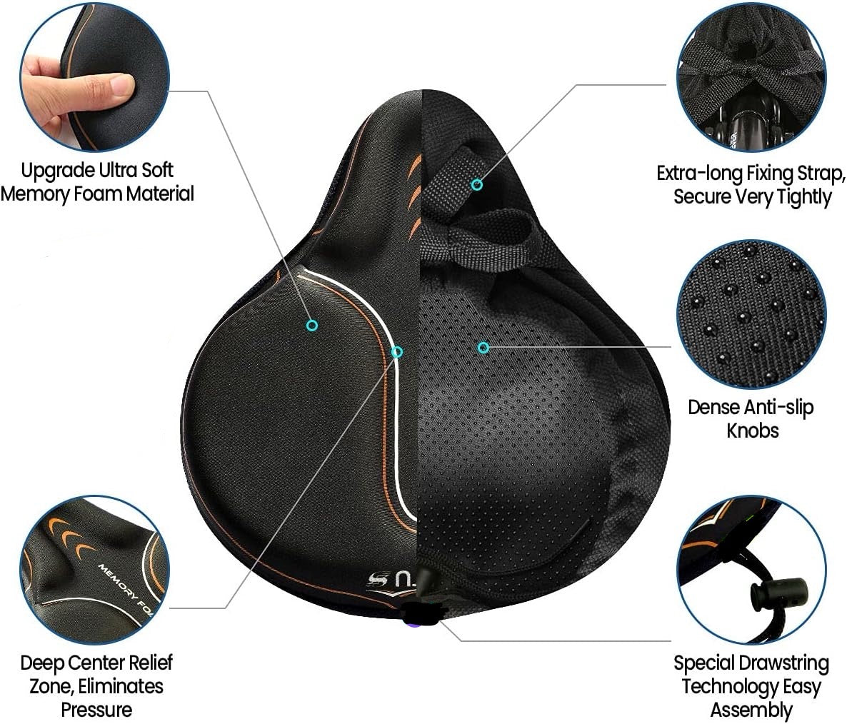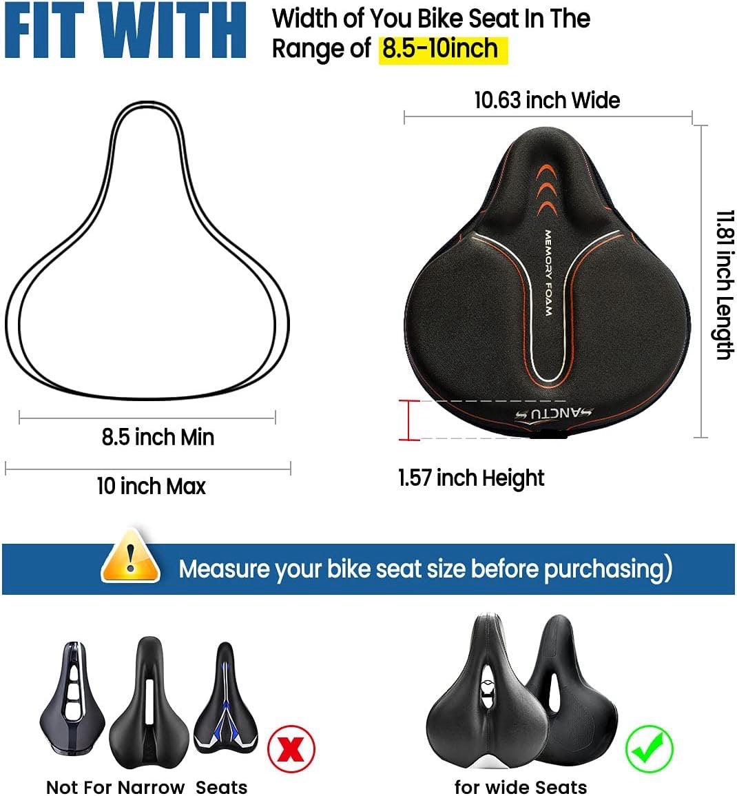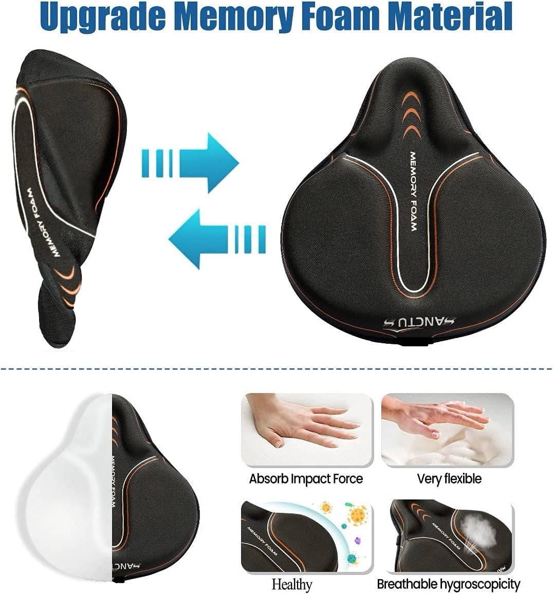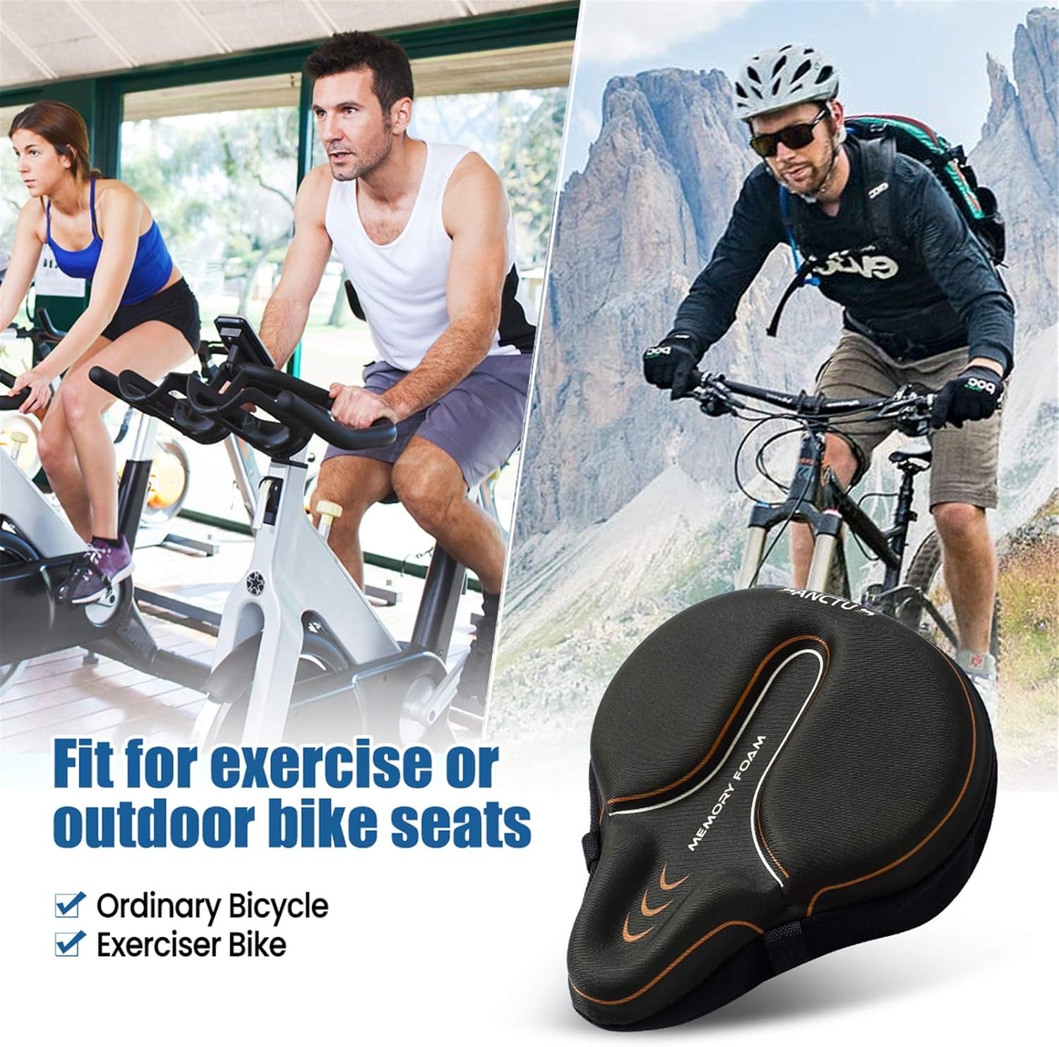 Bike Seat Cushion Cover Memory Foam, Large Wide Bicycle Saddle Soft for Men Women, Comfort Exercise Cycle Seats Cover Padded Fits Stationary Bikes, Cruiser, Spin, with Waterproof Cover