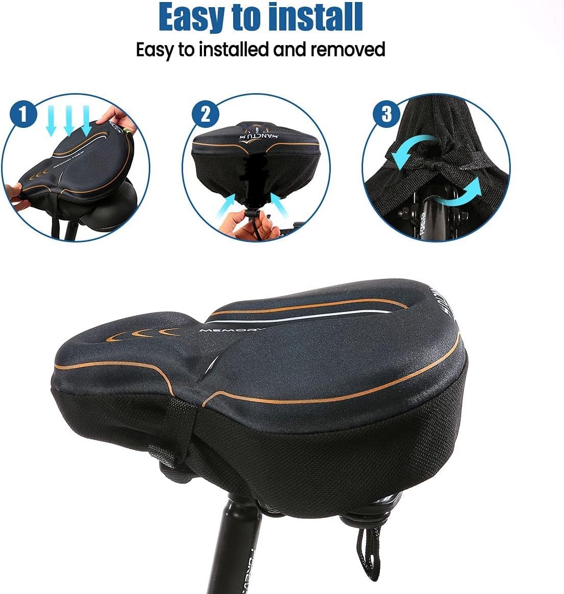 Our bike seat cover is made with upgrade memory foam material. It can give you comfortable touch and better hip protection, absorb the shock, reduce pain effectively, better protect your butt. Bring a healthier & more comfortable experience, which is durable than other Gel or normal foam bike seat cover.