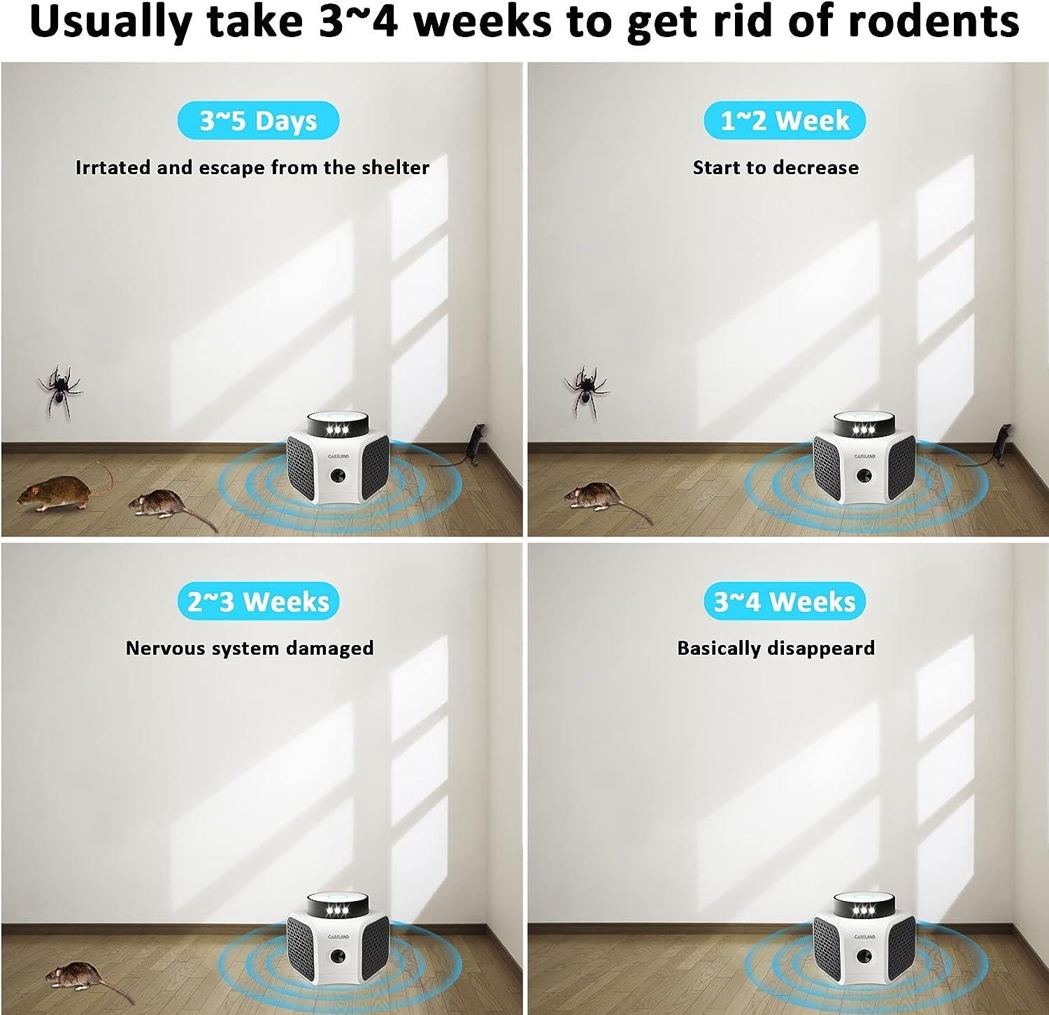 Easy and Effective Setup: Setting up our electric mouse repellent is simple and quick. Just plug it in and it starts working instantly. The device operates silently, ensuring a peaceful environment for you and your pets. This ultrasonic squirrel repeller is a hassle-free solution for maintaining a pest-free space