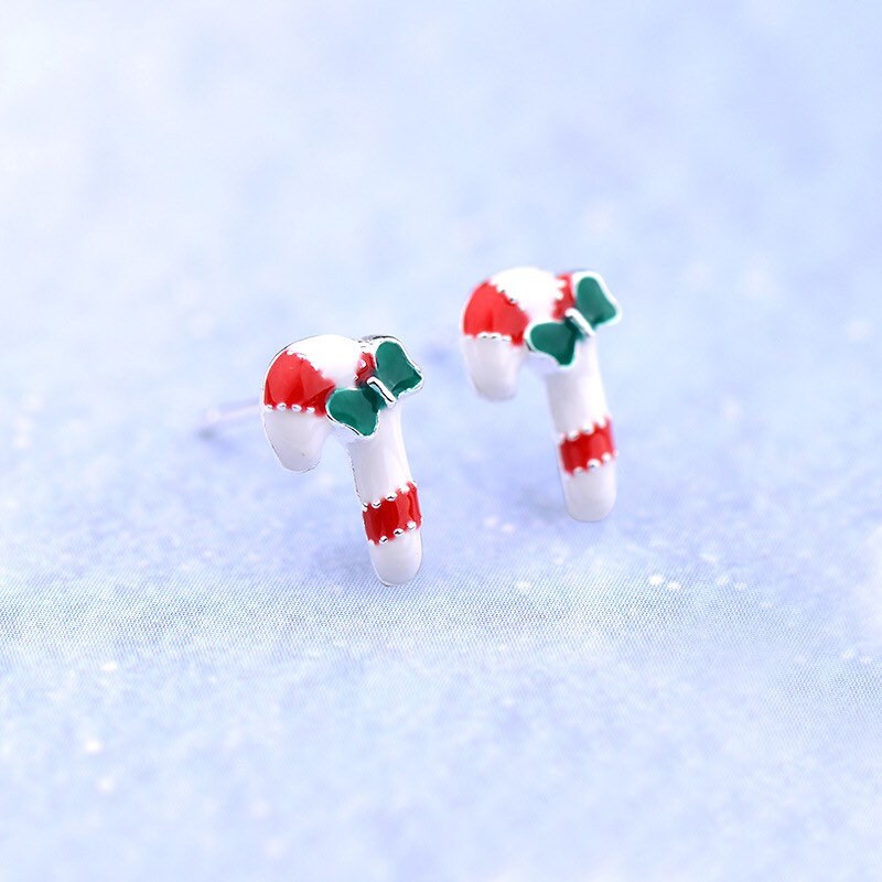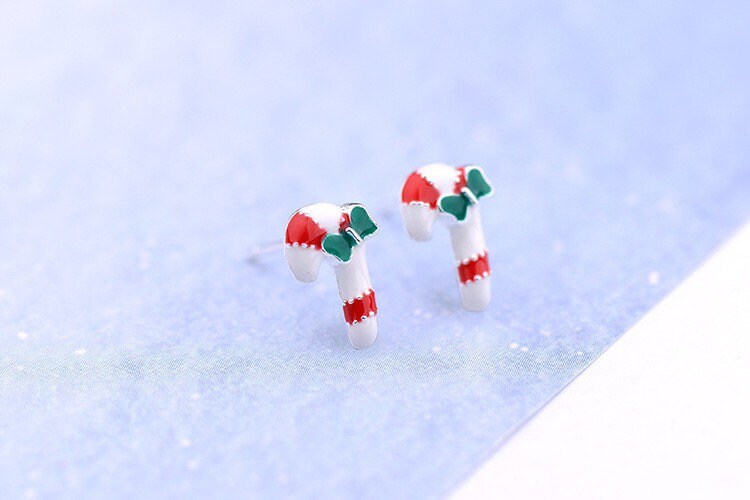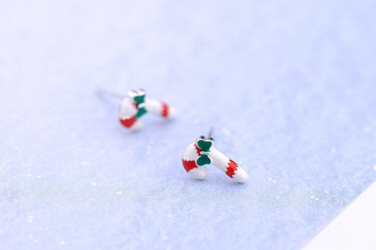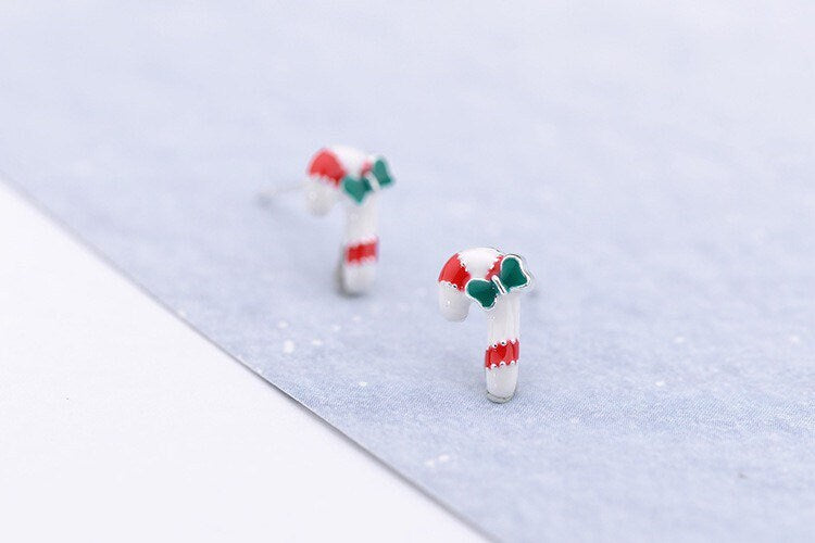 Christmas candy cane Sterling silver Stud earrings, C10