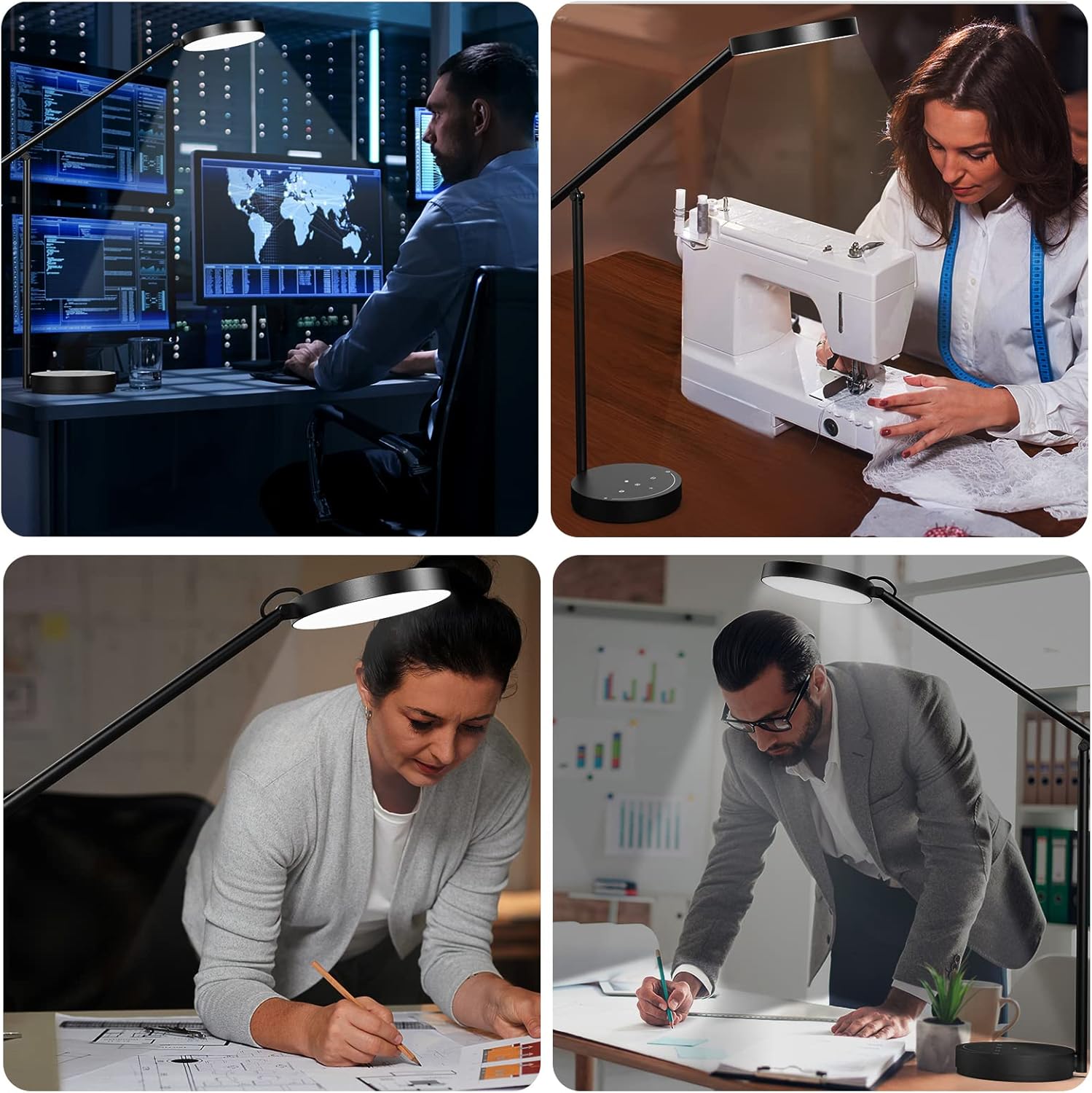 - 【Multifunctional & Multi-angle Adjustable Architect Desk Lamp】Consists of a rotatable lamp head and flexible metal swing arm Desk Lamps, various angle and height free adjustment, desktop illumination more uniform and bright; as a desk lamps work lamp drawing lamp at the same time, but also can be used as a camera lighting lamp, ideal for video calls and conference lighting. You can also set the brightness levels just by sliding the touchpad lightly.