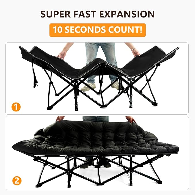 - Versatile for Multiple Uses: The cots for camping is suitable for outdoor camping, RV travel, hiking, patio, pool, balcony, terrace and so on. Indoor living room, bedroom, hospital companion or office rest, it can meet the requirements of all-day rest in any environment