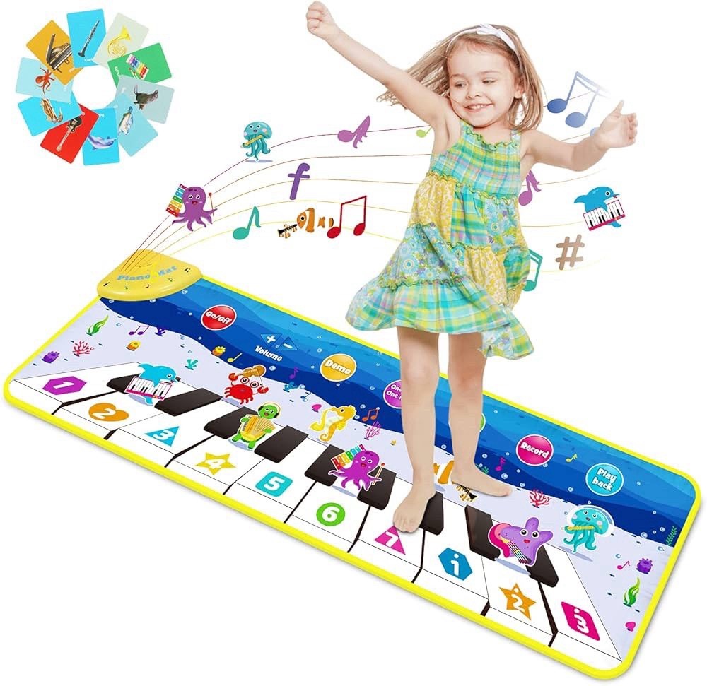 Kids Musical Piano Mat - 43" Touch Play Mat with 8 Instrument Sounds, Flashing Lights, 15 Learning Cards, 5 Modes