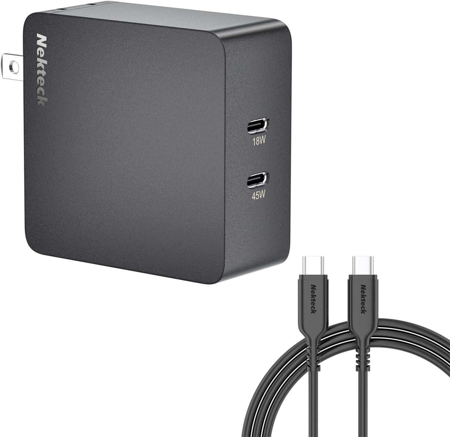 Nekteck 63W USB C Wall Charger with 45W Power Delivery, Foldable Plug Charging Adapter with 6.6ft Type C Cable Compatible with Dell XPS, Surface Go, Pixelbook, iPad Pro, Galaxy, iPhone 11 Pro Max