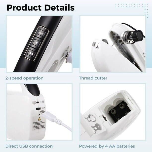 Enjoy the convenience of dual power supply; whether you choose battery operation for portability or the USB cable for continuous power, this sewing machine caters to your crafting needs anytime, anywhere.