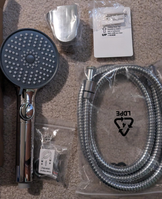 - 【Easy Installation】-The camper shower head with hose, shower hose clamp and adhesive holder. The rv shower head replacement is stable & sturdy, The stainless steel shower hose has universal G1/2 threads. The kits include all necessary parts. Just take minutes to finish the assembly, no tool, no plumber needed.