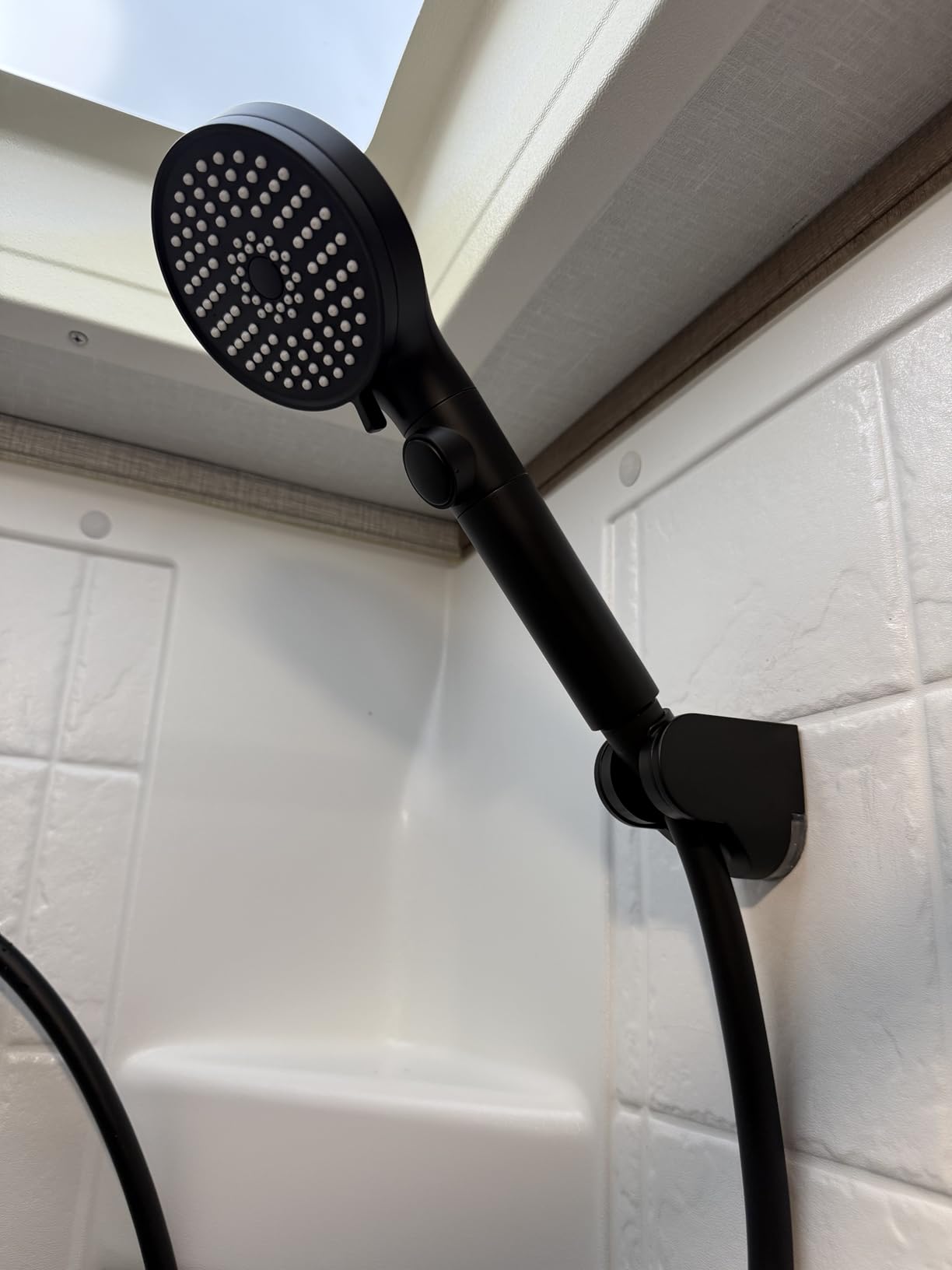 - 【5 Setting Handheld RV Shower Head 】 -High pressure handheld RV Shower head with Hose and on off switch has 5 Spray modes, including Rain, Massage, Rain+Massage, Pause Mode and Powerful Wash. The outdoor shower head for RV, Camper, Travel Trailer, Motorhome and boat.