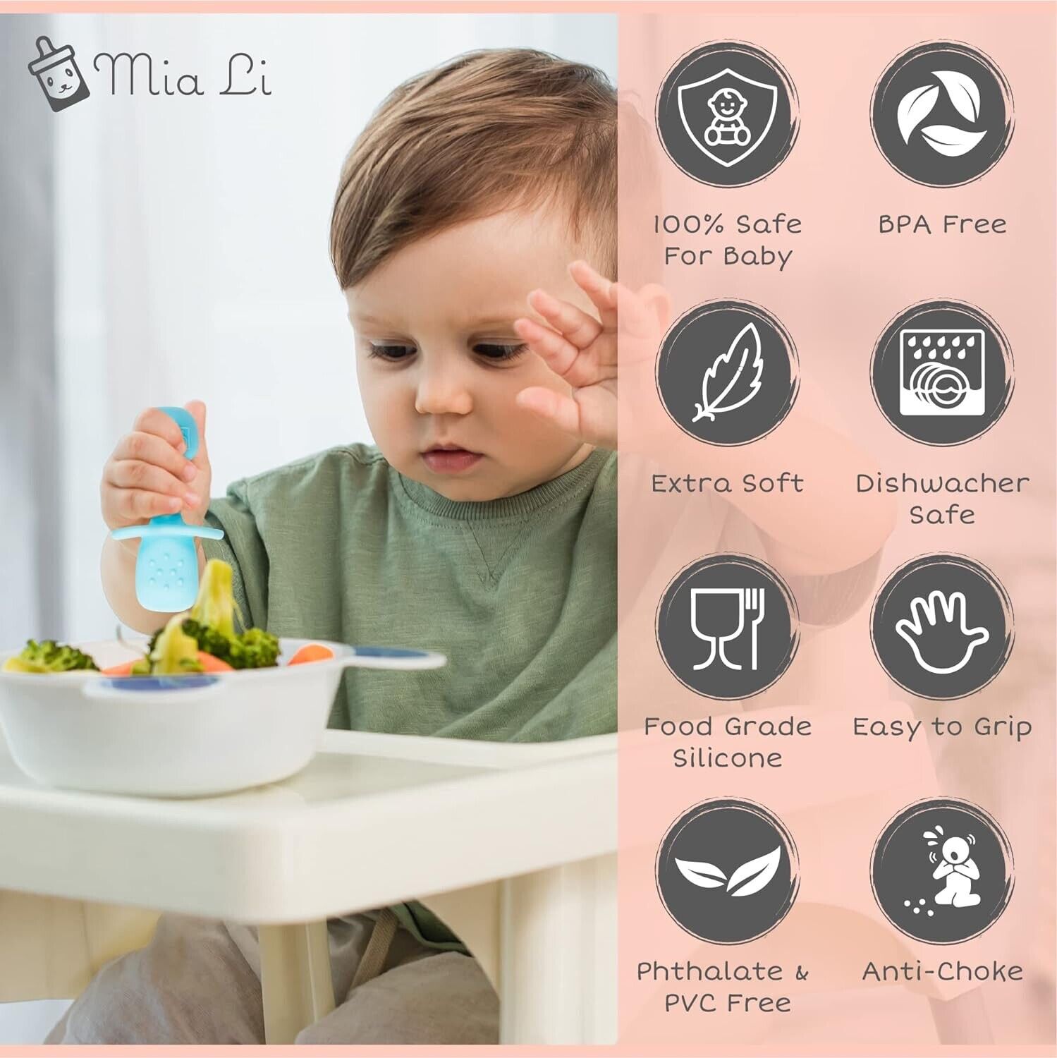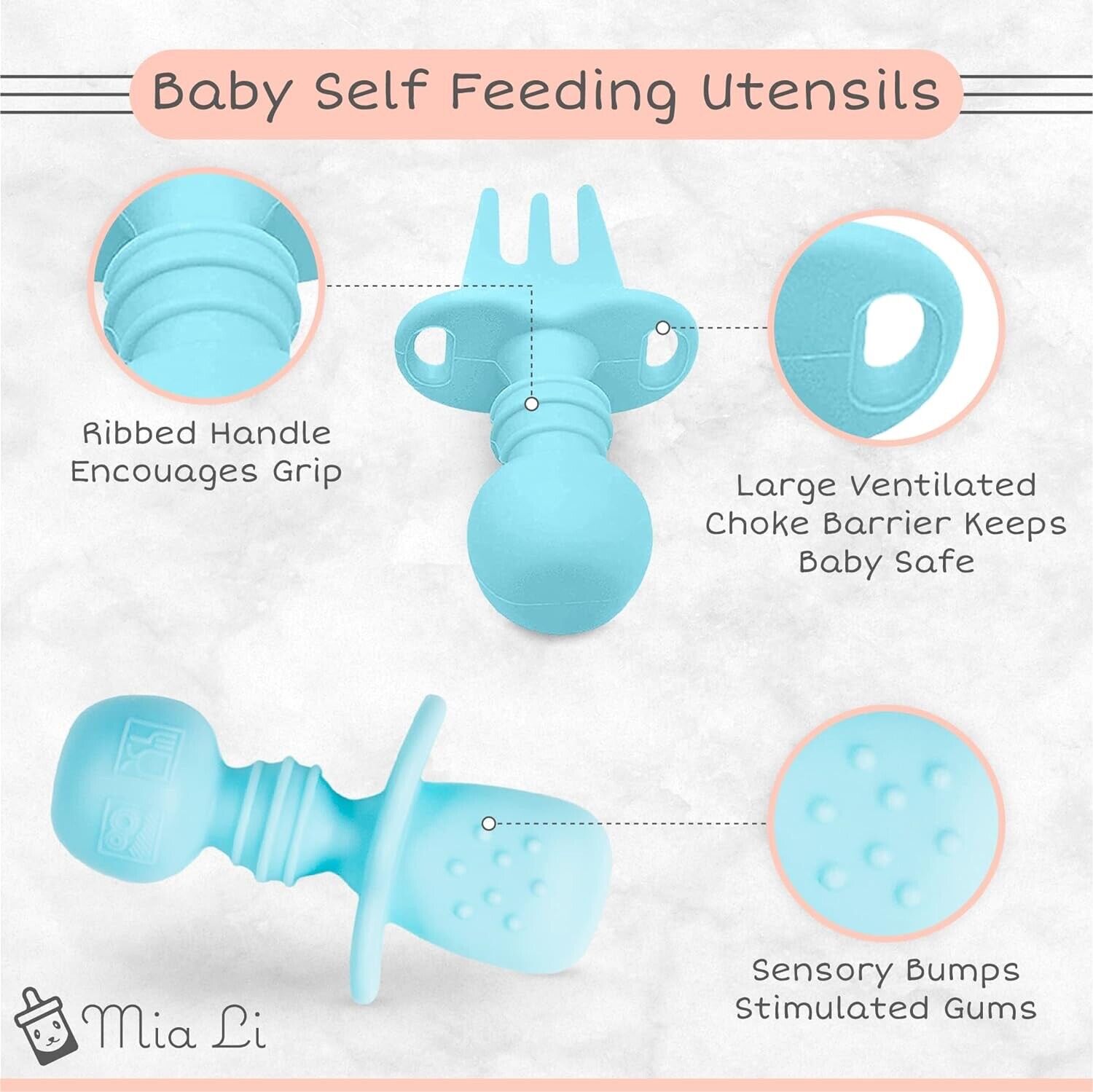 Toddler Utensils Set - First Training Self Feed Silicone Baby Utensils