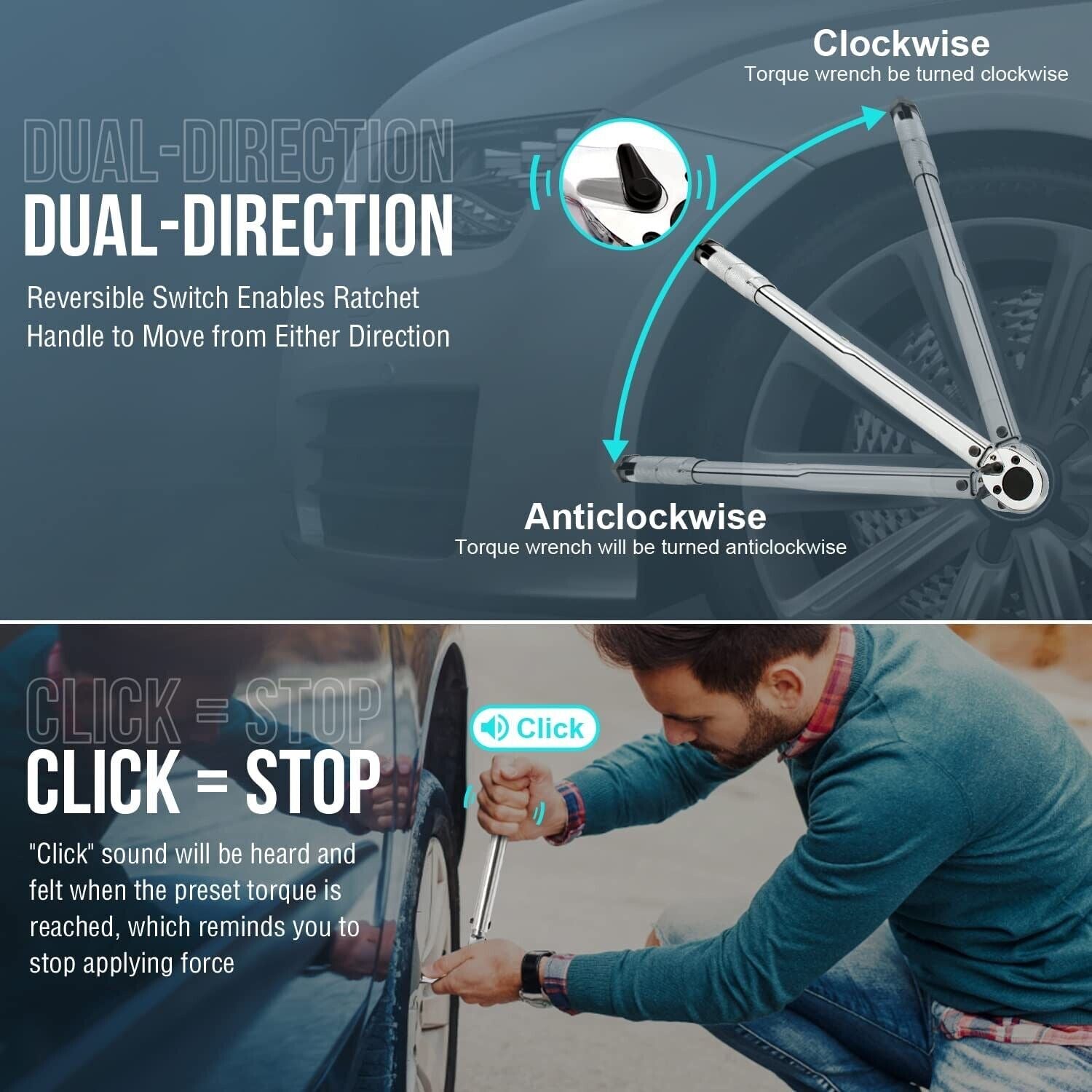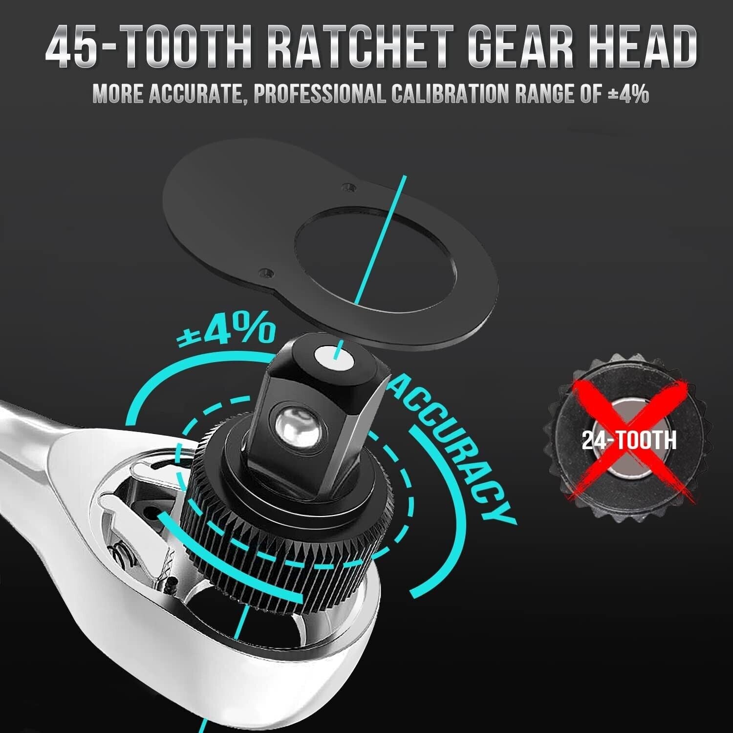 Precise & Dual-Direction Operation - This Industrial-grade torque wrench ship is pre-calibrated to ±4% accuracy, 45-tooth ratchet head provides a smaller range of movement, more precise than other brands' 24-tooth ratchet head. The torque wrench can be used both clockwise and counterclockwise after completing the torque setting.