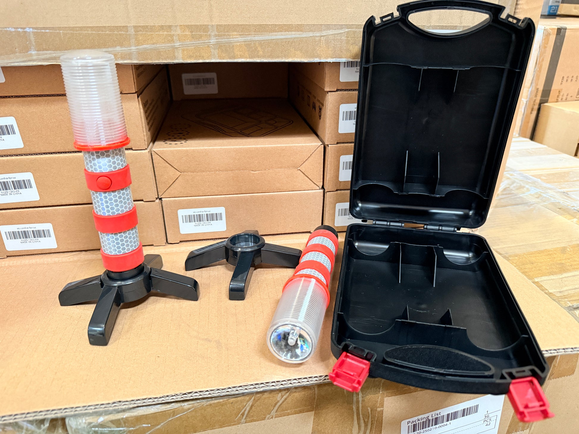 Emergency Roadside Flares Kit LED Safety Strobe Road Warning Light Highway Beacon Alert Flare with Magnetic Base, Detachable Stand, Solid Storage Case