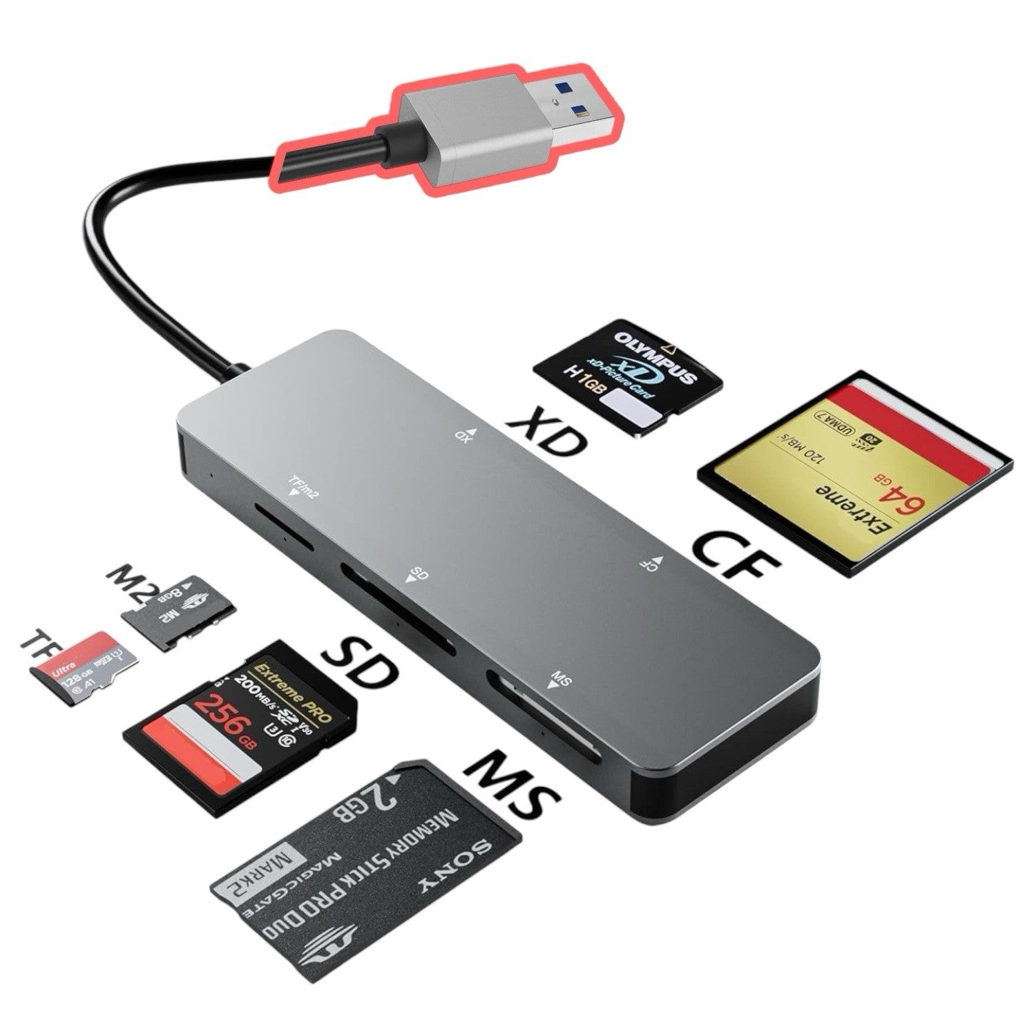 USB3.0 XD Card Reader, USB 3.0 (5Gps) High Speed TF/SD/MS/M2/XD/CF Memory Card Solt Combo Adapter, 6 in 1 Aluminum Card Reader,Compatible with Windows XP/Vista / 7/8 / 8.1/10, Mac OS, Linux