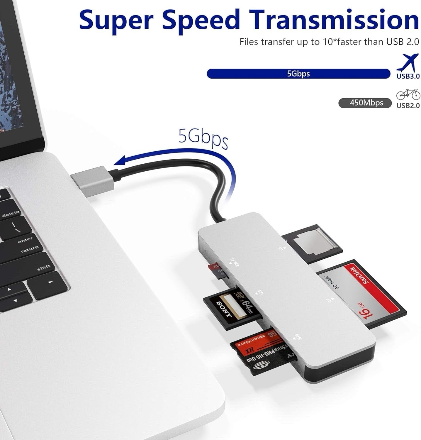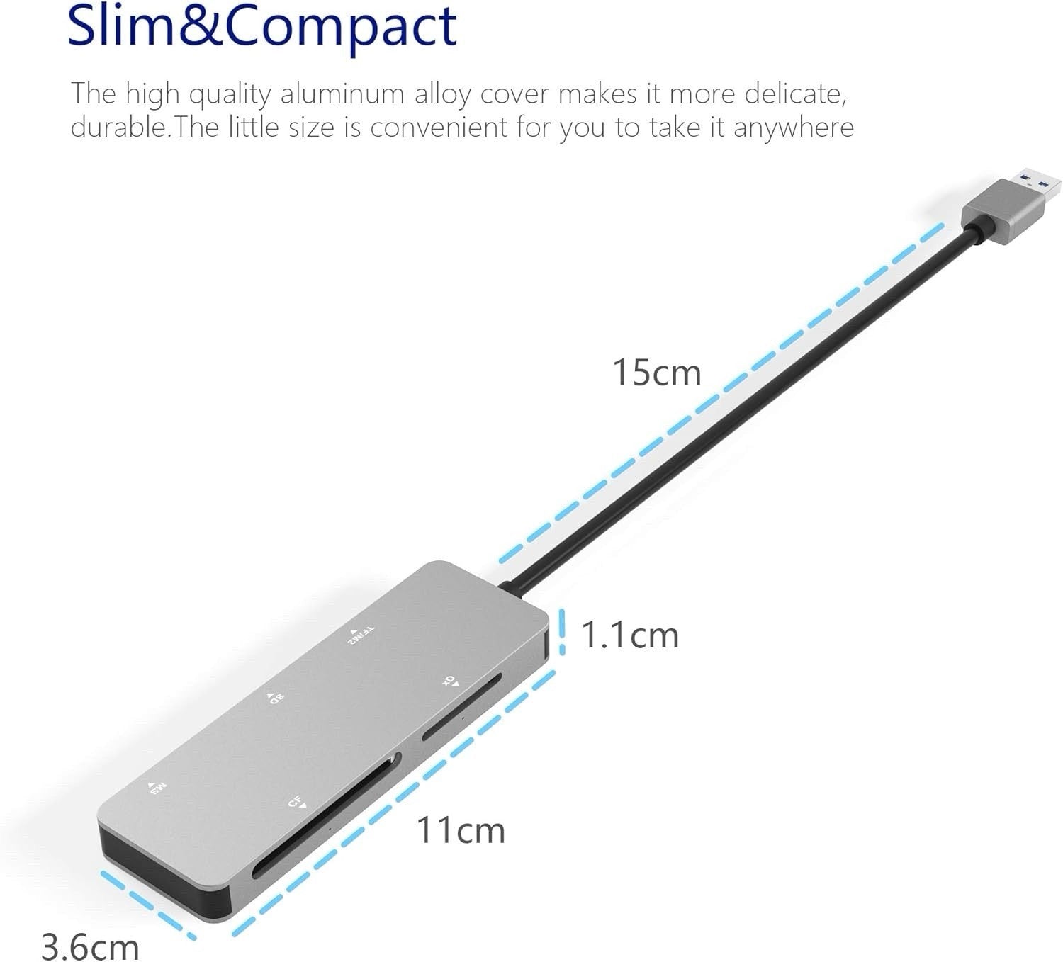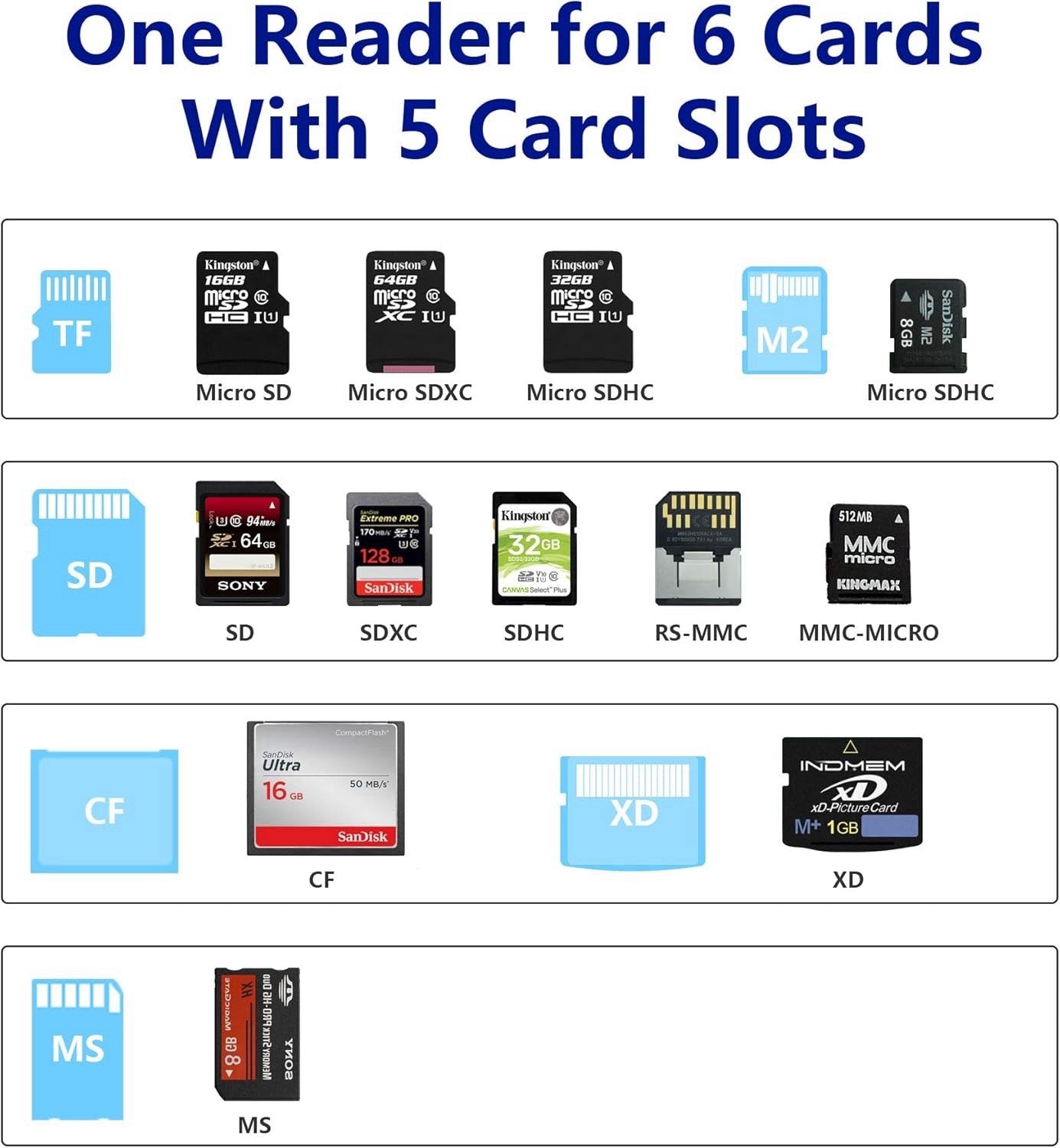 ✅ 【 Simultaneously read and write on five cards 】 : USB Card Reader is designed withTF /SD /MS /M2 /XD /CF card. USB 3.0 Card Reader simultaneously read and write on five cards, eliminating the effort of plugging in and out. Computer Memory Card Readers will greatly improve your work efficiency.