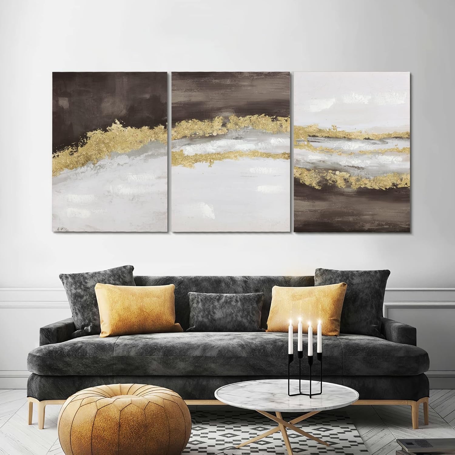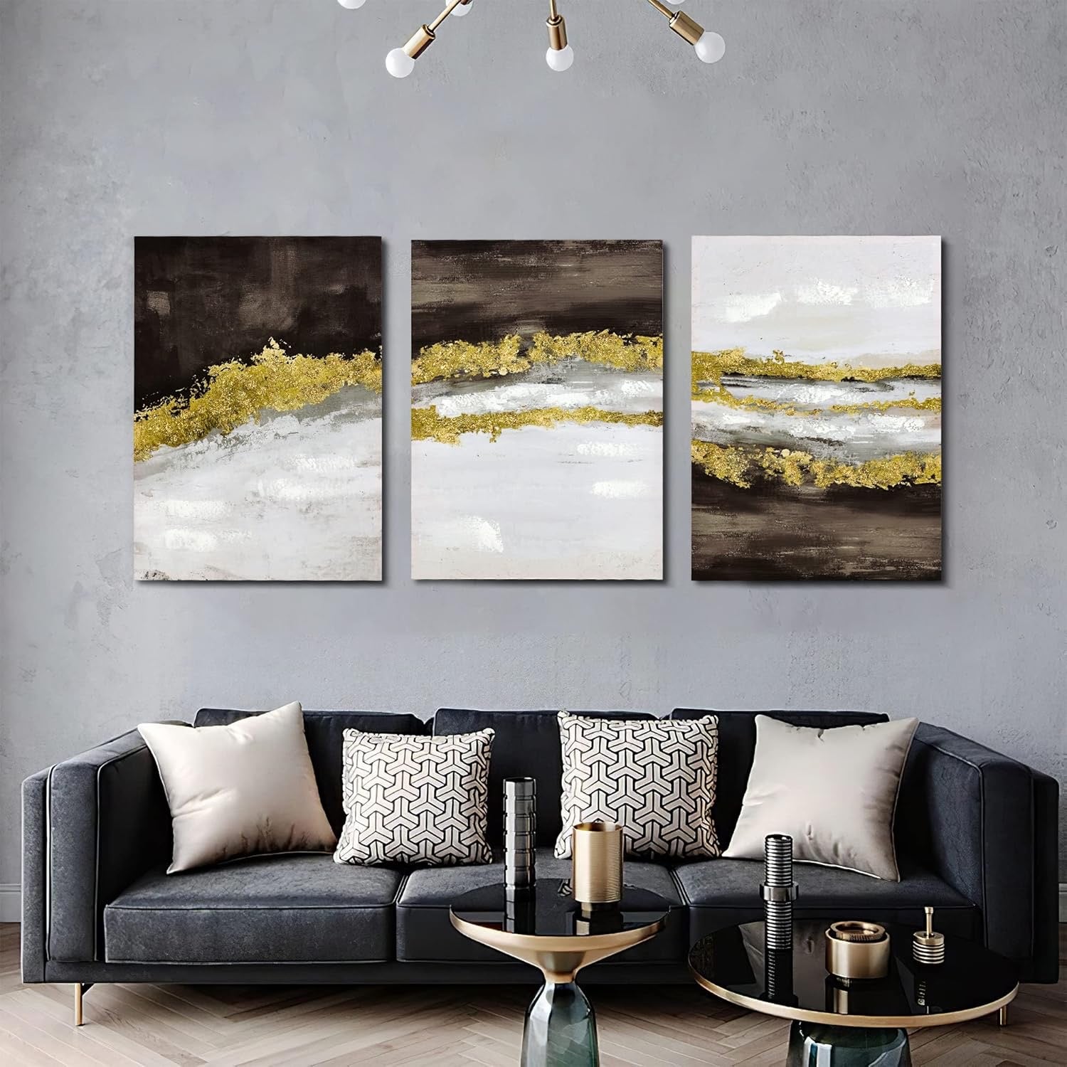 Abstract Wall Art,Gold Canvas Wall Art for Living Room,3 Piece Wall Art,Paintings for Wall Decorations Living Room Bedroom Bathroom Wall Decor(20"x28"*3 pcs)