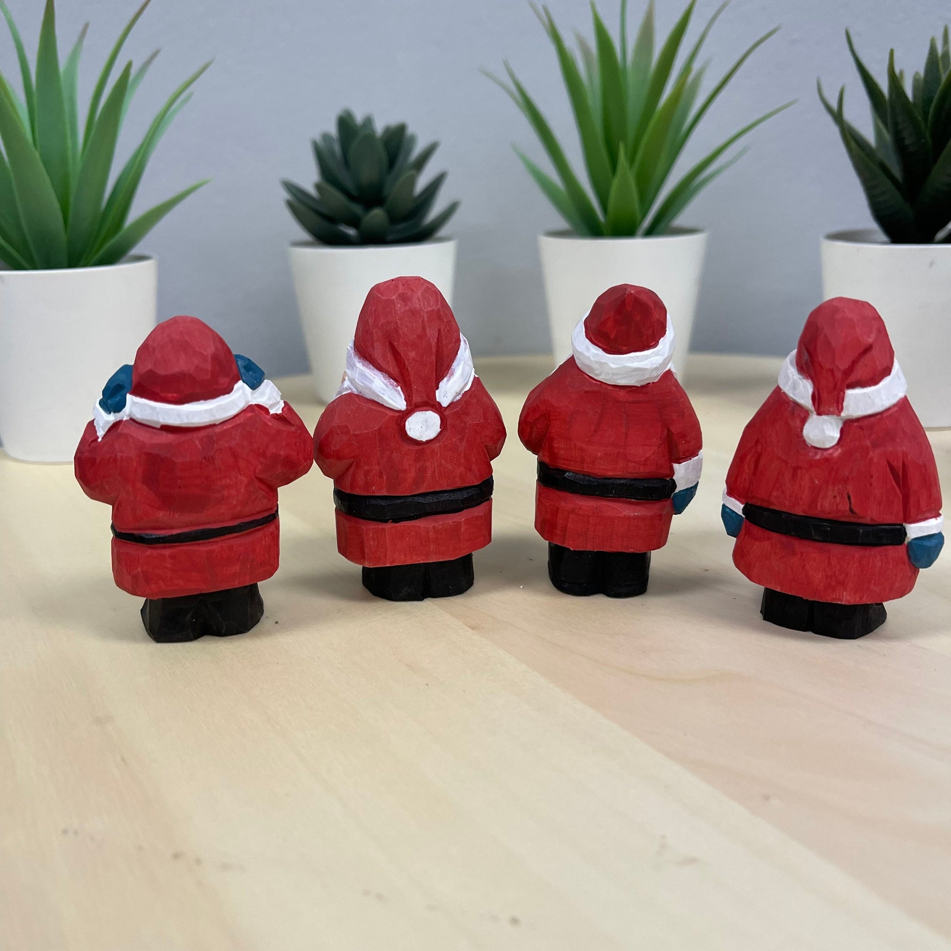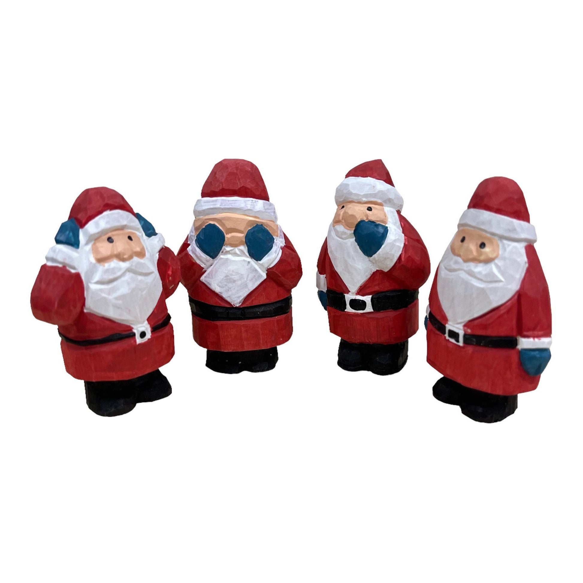 YEEYAYA 4 PCs Santa Sets Wood sculpture Hand Carved Wood Wooden Santa Claus Figurine Christmas gift Wood Statue home Decor