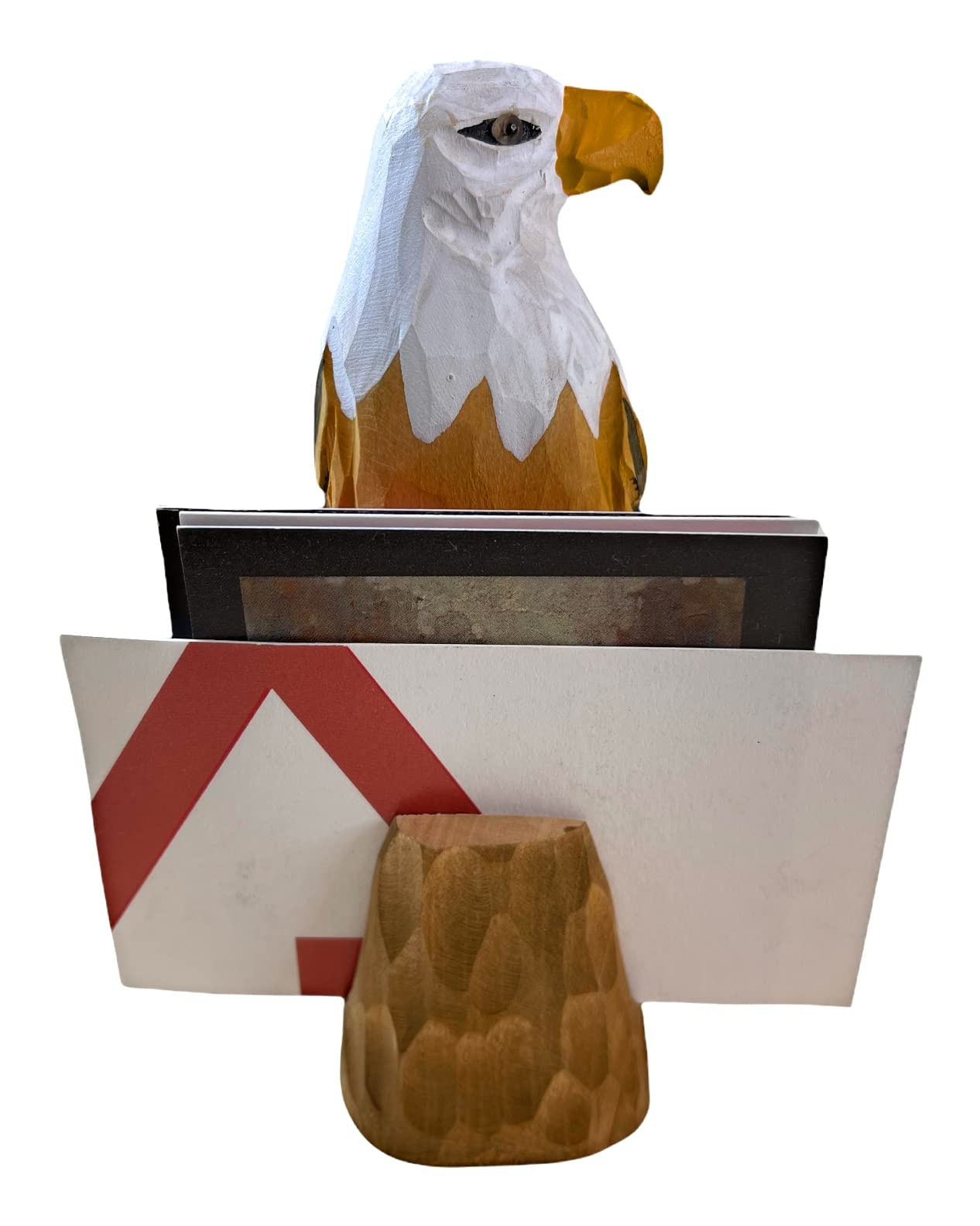 YEEYAYA American Bald Eagle Wood sculpture woodcarving Hand Carved business card holder Figurine gift present wood carving home Decor Business card holder Glasses holder Hand Carved Wood Wooden Figurine gift present 5.1 inch height . . Condition is New. Hand made it.