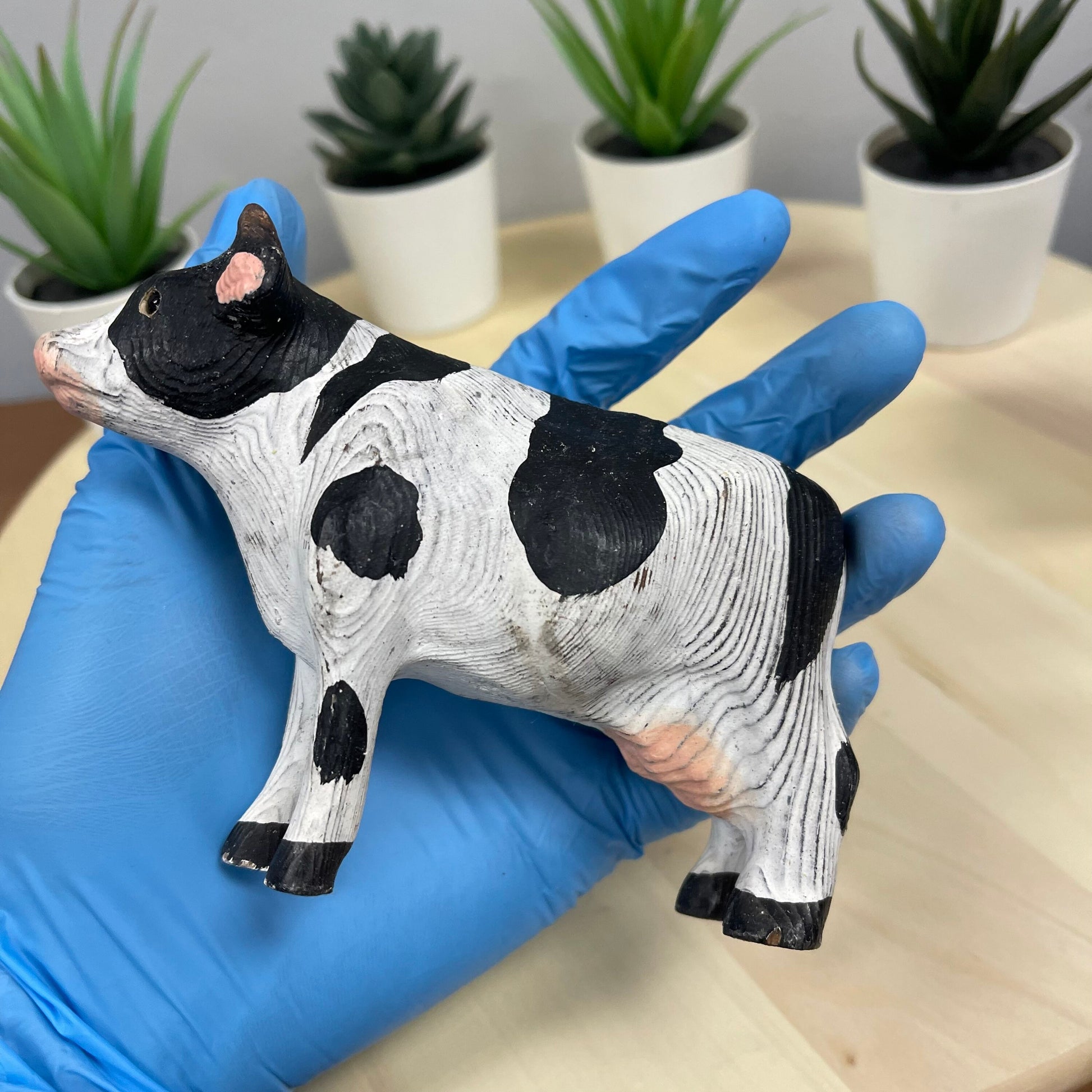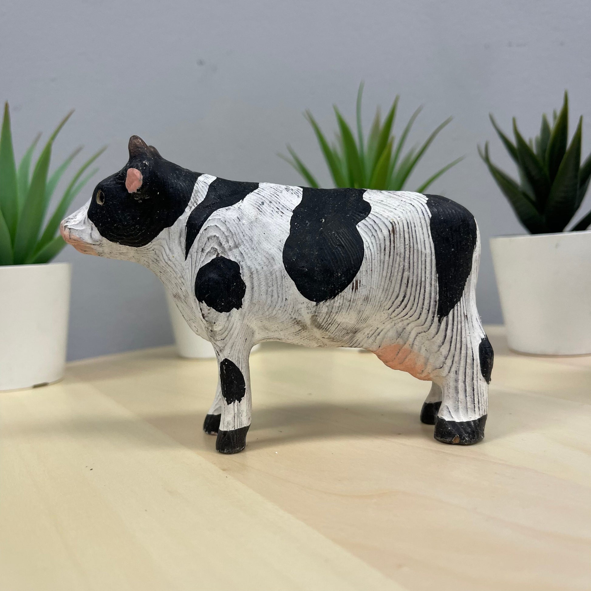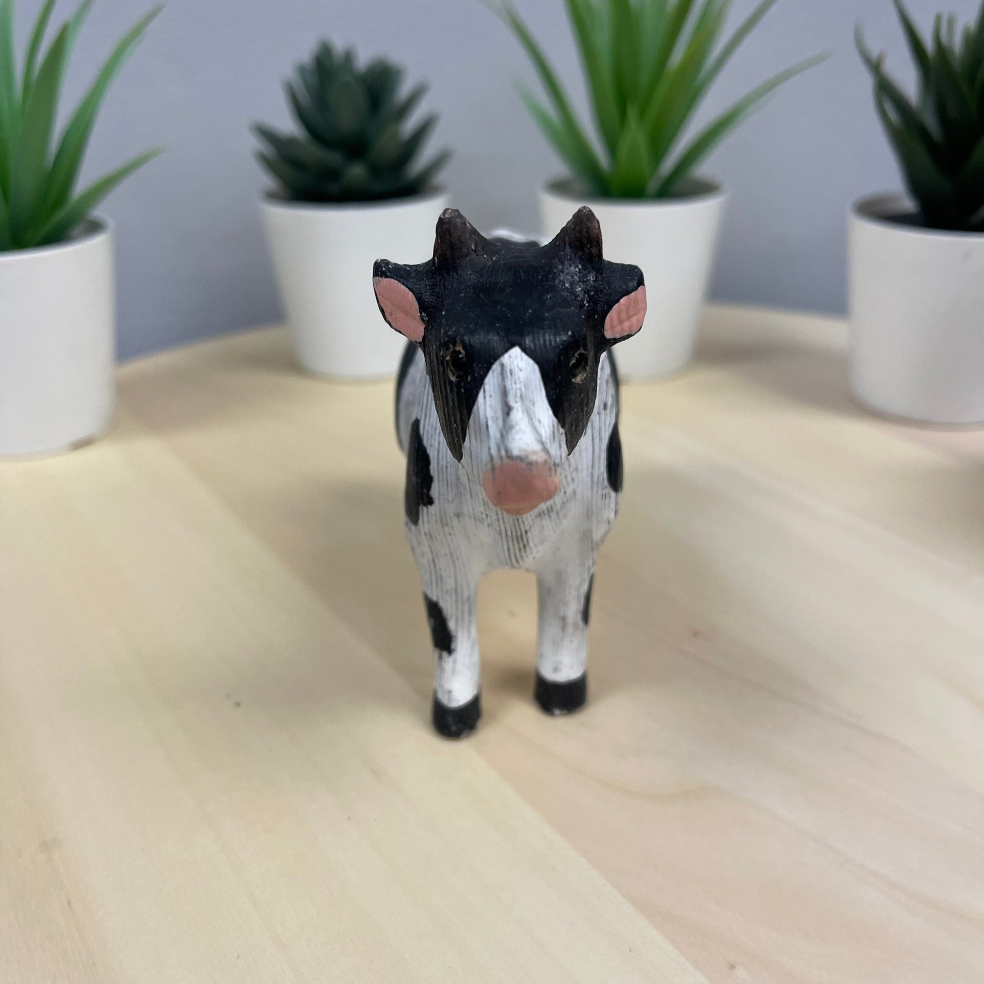 YEEYAYA Cow 5” Wood sculpture Hand Carved Wood Figurine Christmas gift Wood Statue Room Decor home Decor Farm animals Zoo animals