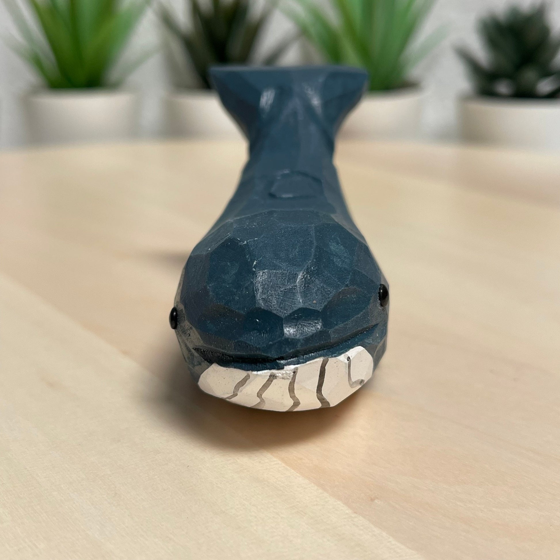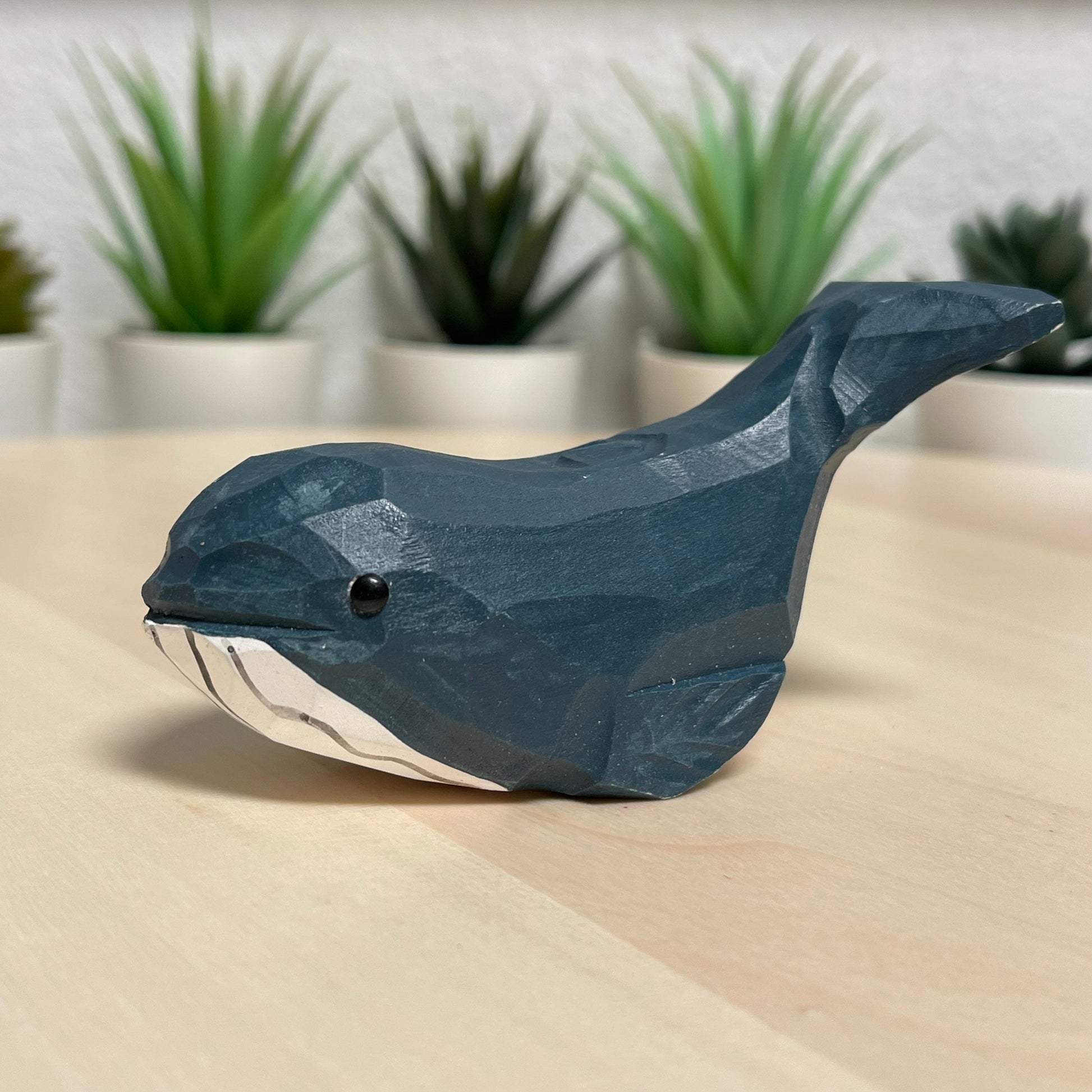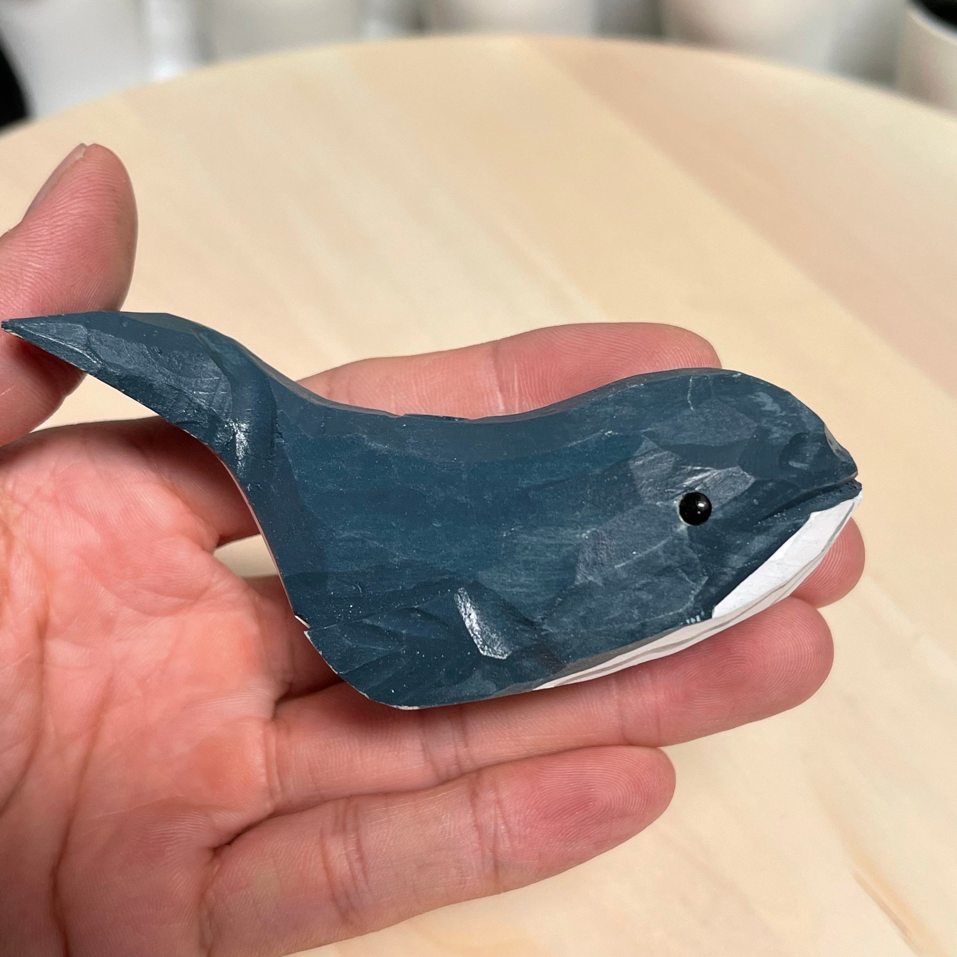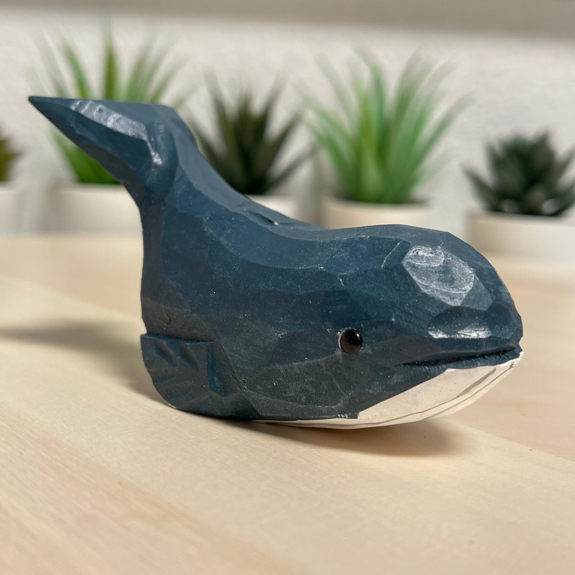 YEEYAYA dark blue Whale 4“ Wood sculpture Hand Carved Wood Figurine woodcarving statue home decor room decor Aquatic animal Marine animals