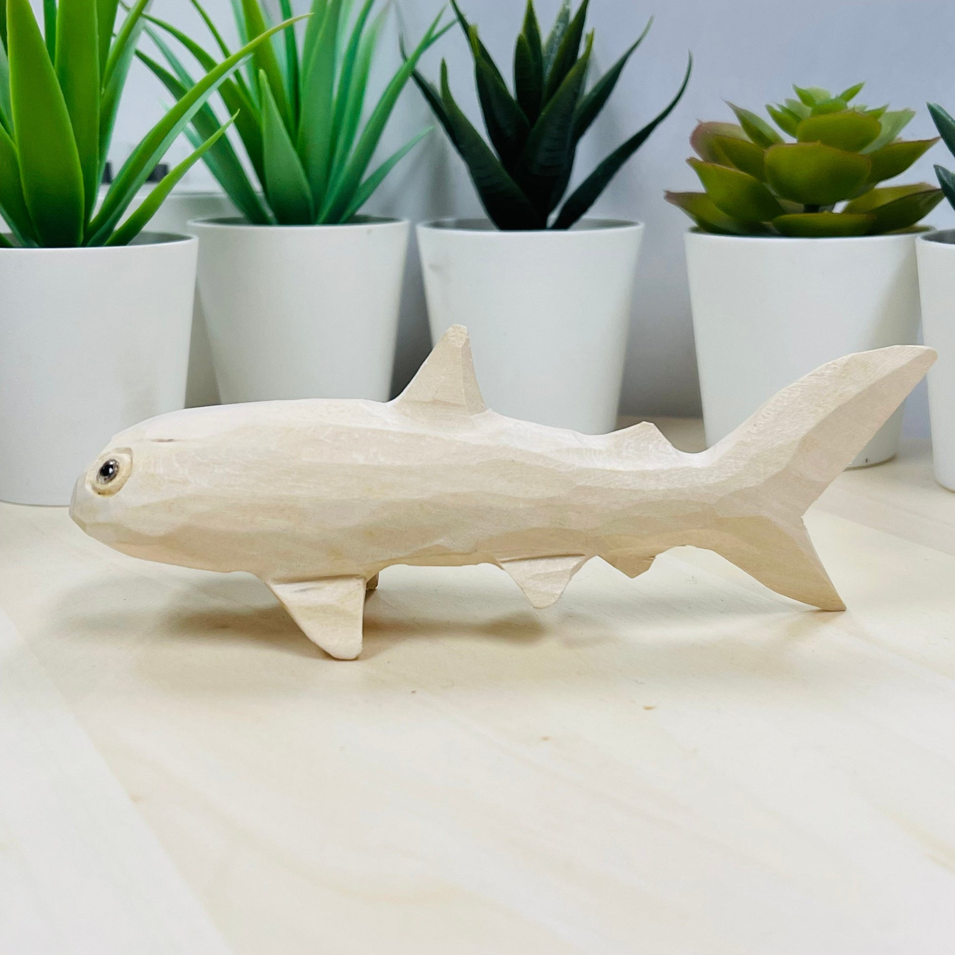 YEEYAYA Fish 6 inch Wood sculpture Hand Carved Wood Wooden whale Figurine woodcarving home decor room decor Aquatic animal Marine animal