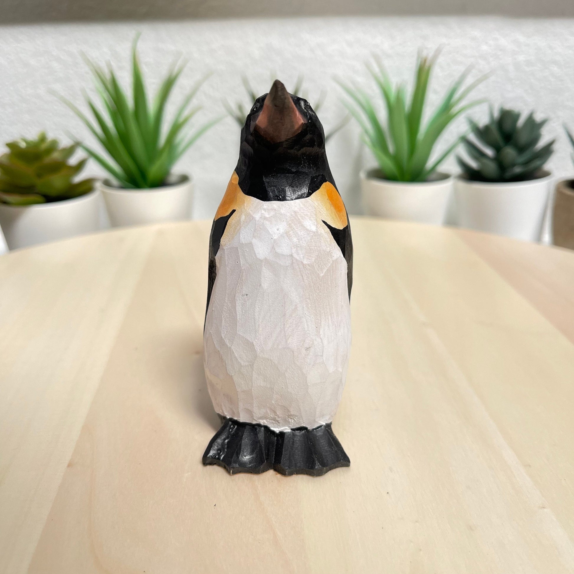 Hand Carved Wood Wooden penguin Figurine Merry Christmas gift