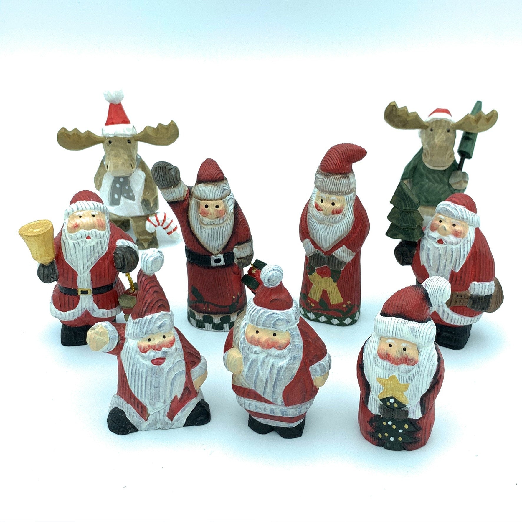 YEEYAYA Black Bear Wood sculpture Hand Carved Wood Wooden Santa Claus Figurine Christmas gift Wood Statue Room Decor home Decor wild animals