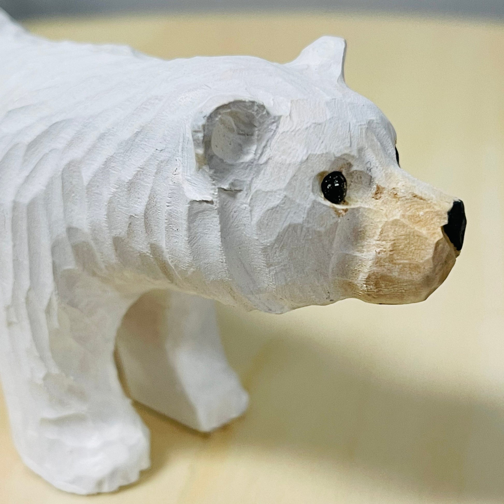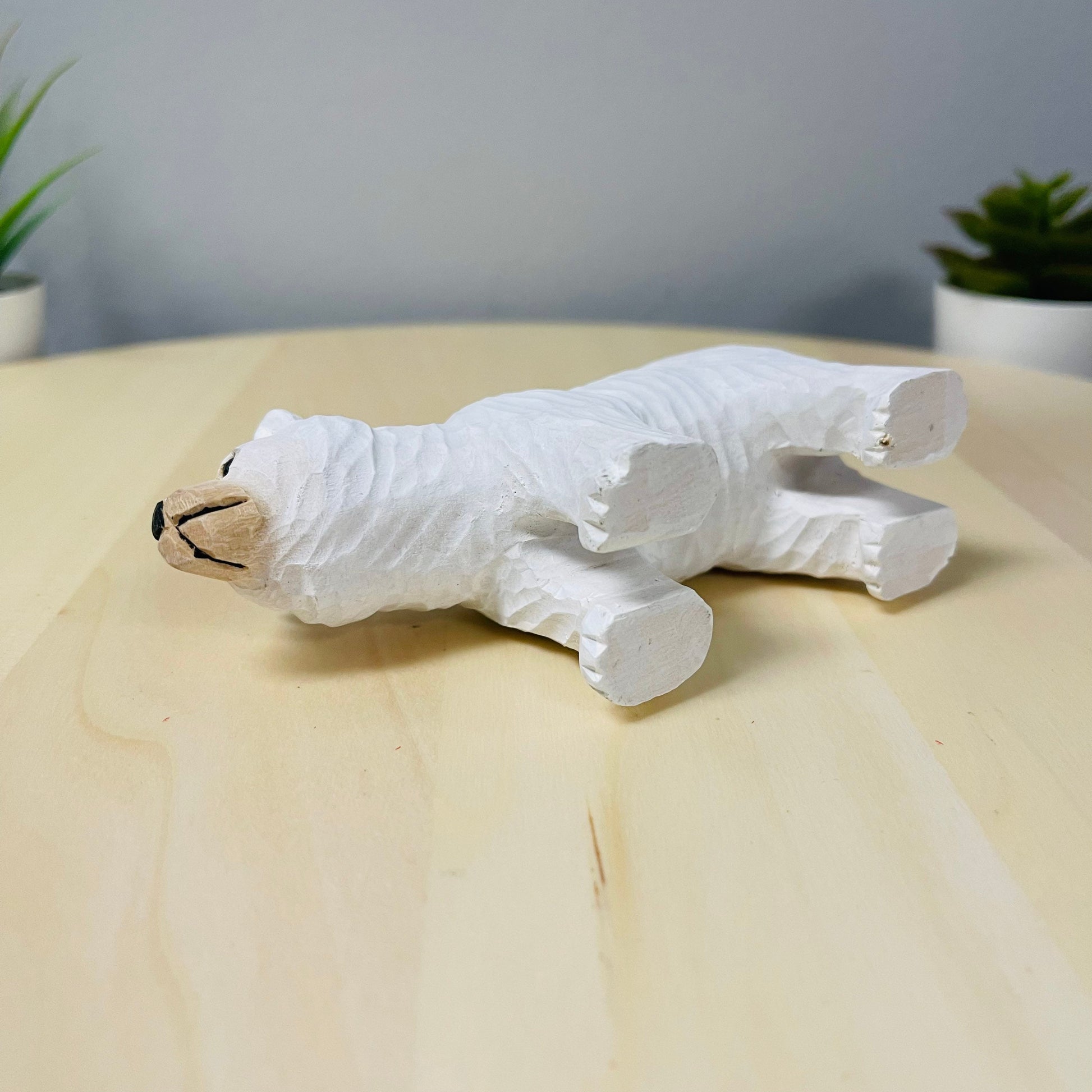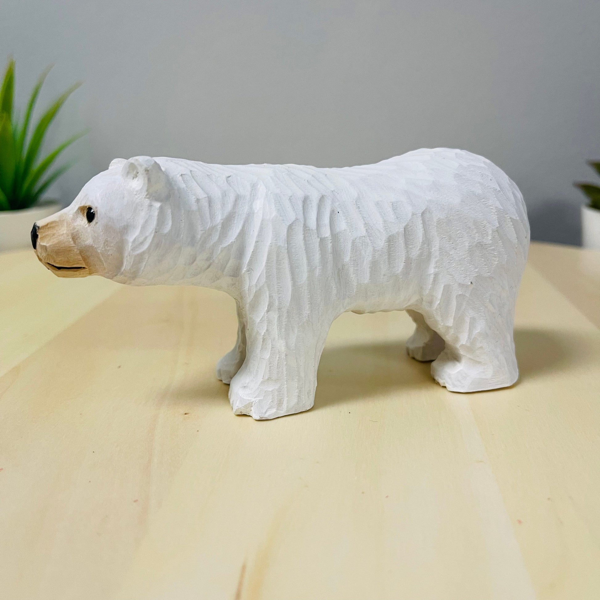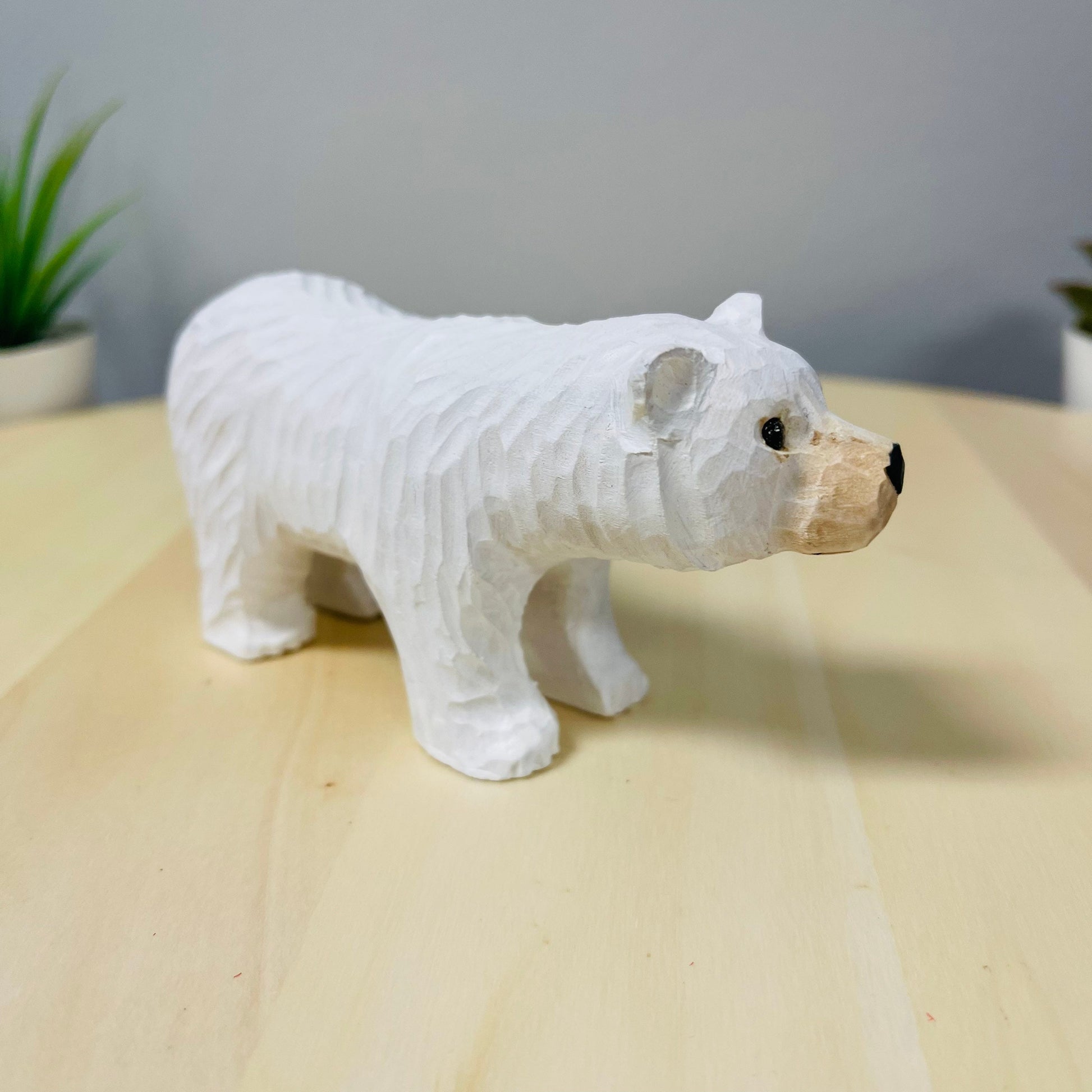 YEEYAYA White Bear 5” Wood sculpture Hand Carved Wood Figurine Christmas gift Wood Statue Room Decor home Decor wild animals Zoo animals