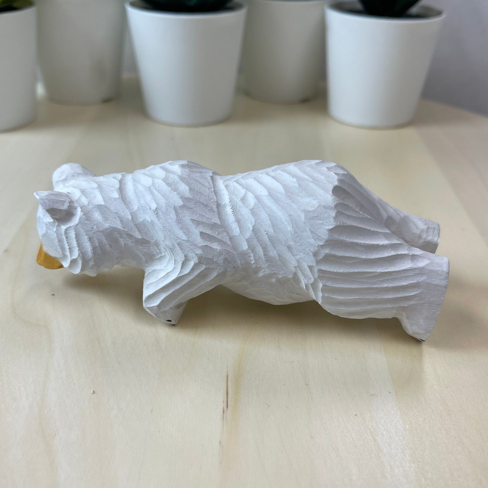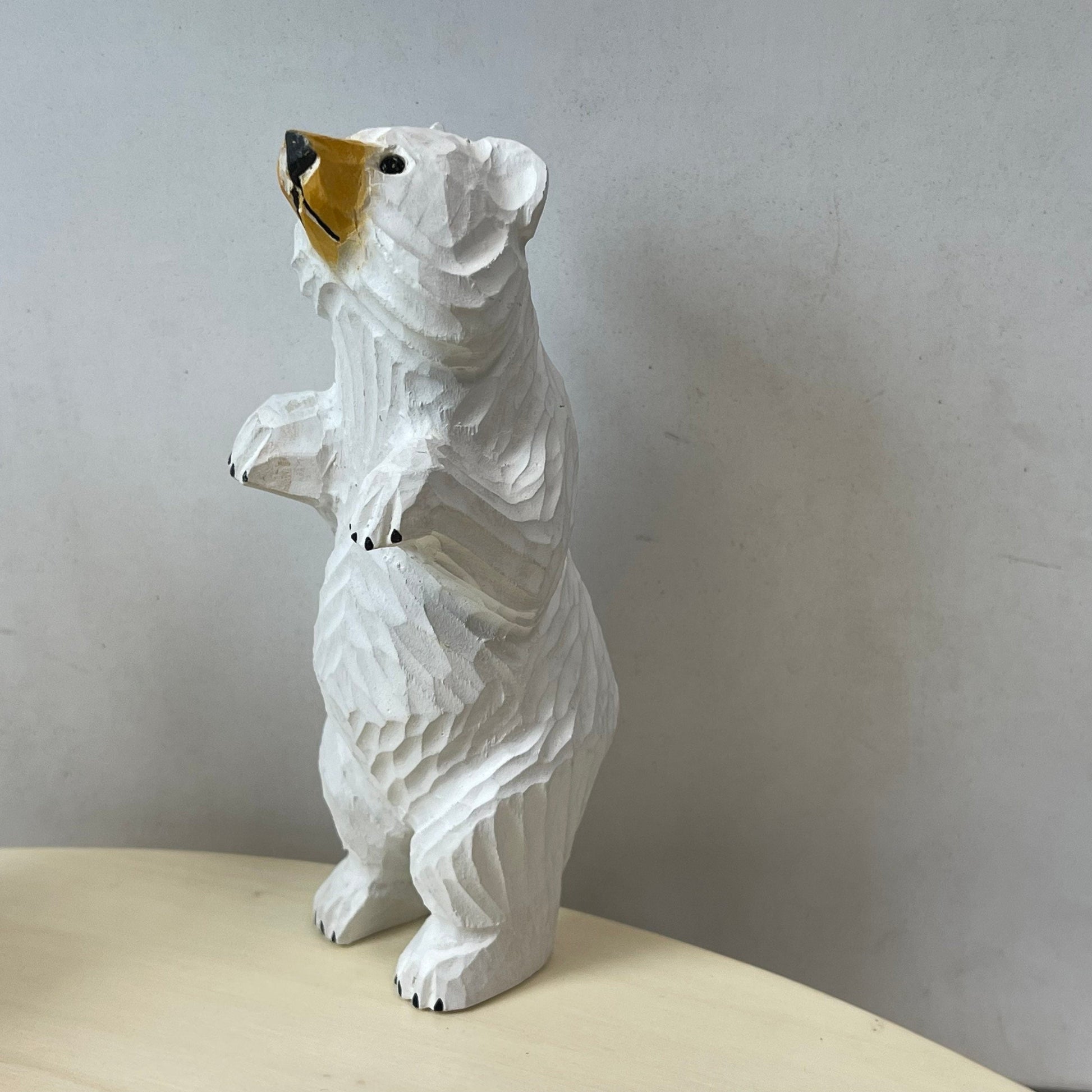 YEEYAYA white Bear 5” Wood sculpture Hand Carved Wood Figurine Christmas gift Wood Statue Room Decor home Decor wild animals Zoo animals