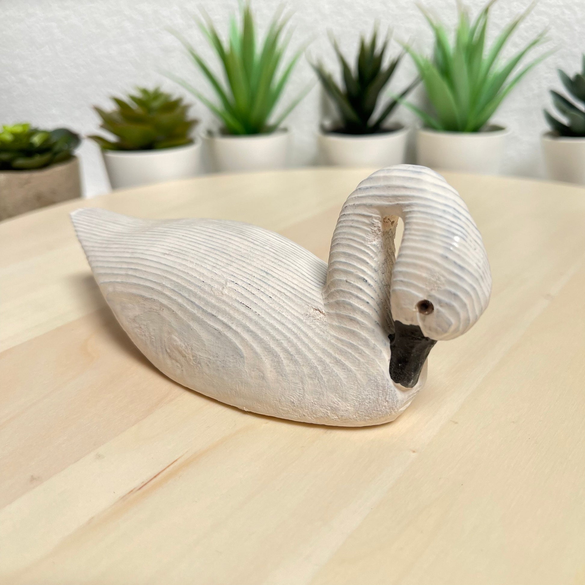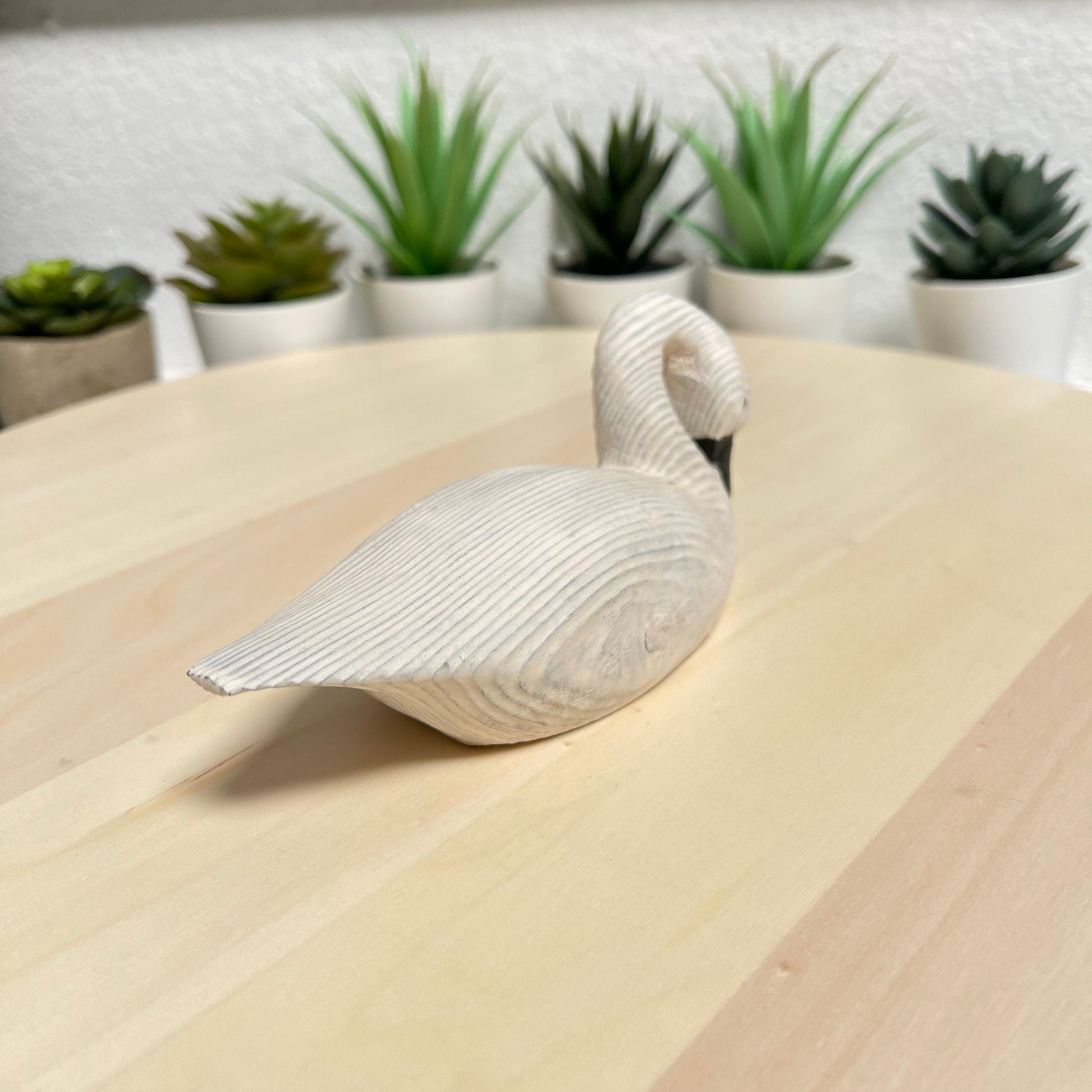 YEEYAYA Wood White Swan Wood sculpture Home decor Wood statue Wood figurines room decor Hand Carved wild animals